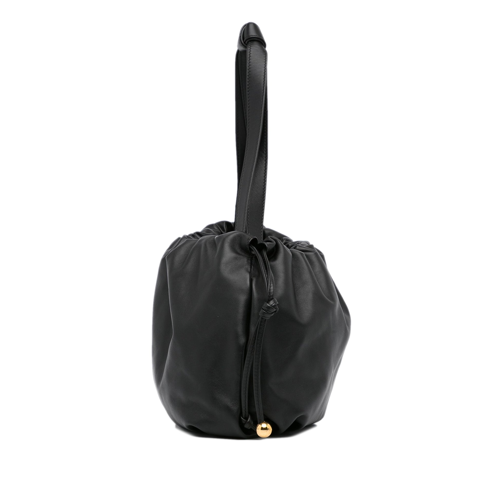 Product Details: Black Bottega Veneta Medium The Bulb Hobo Bag. The Bulb features a leather body, flat leather shoulder straps, and a top drawstring closure. 9.5" L x 14" W x 5.5" D, 9" drop. Serial number B09273958K.