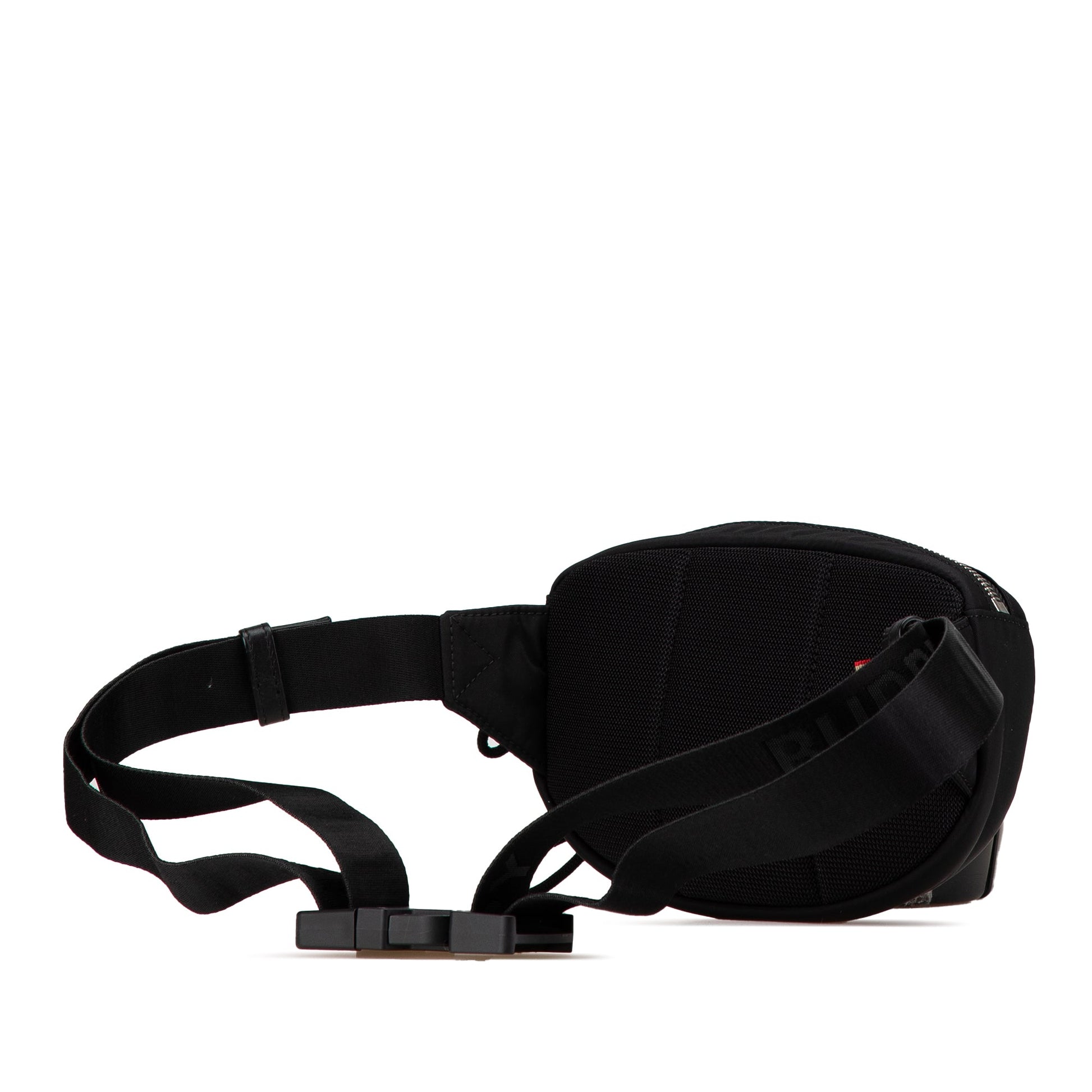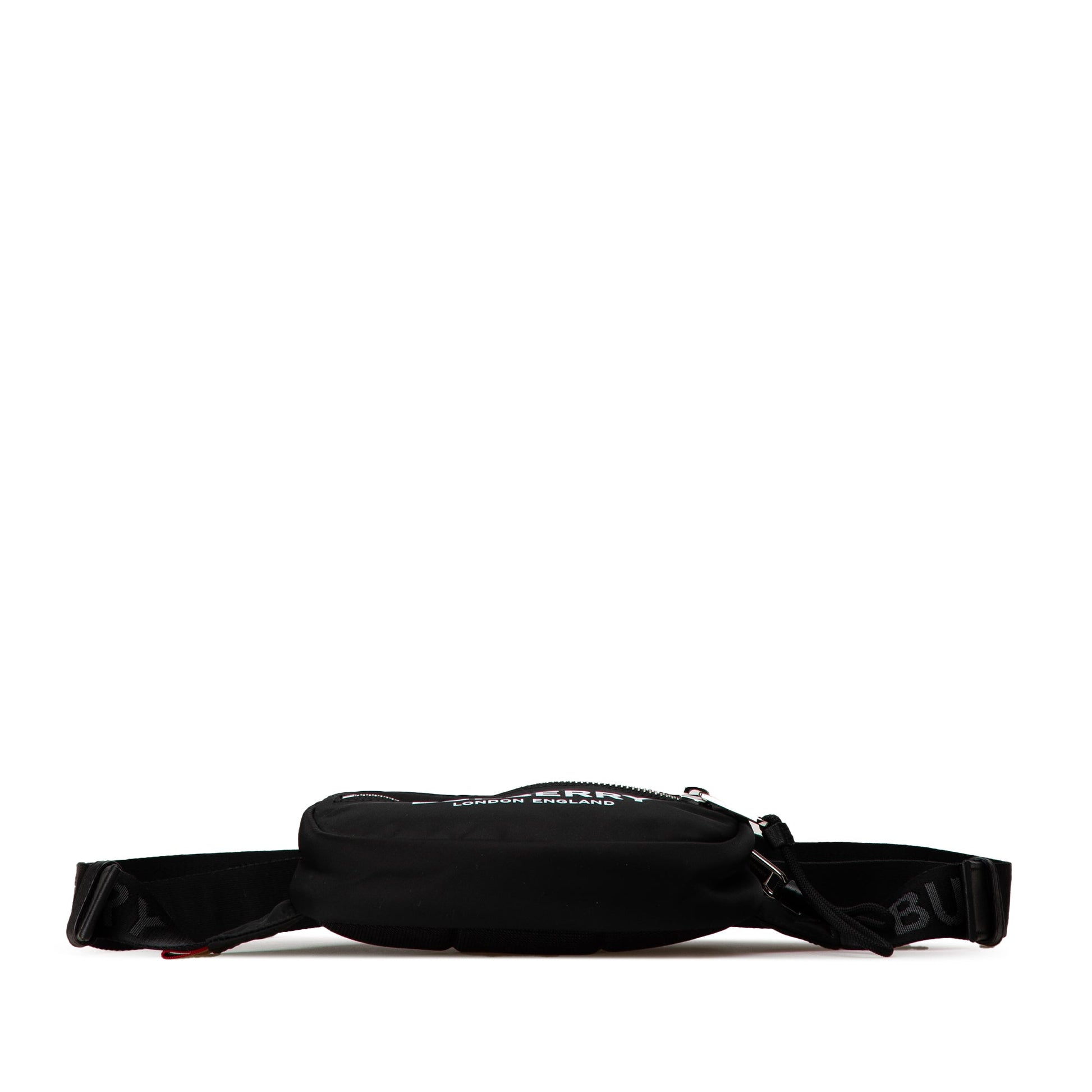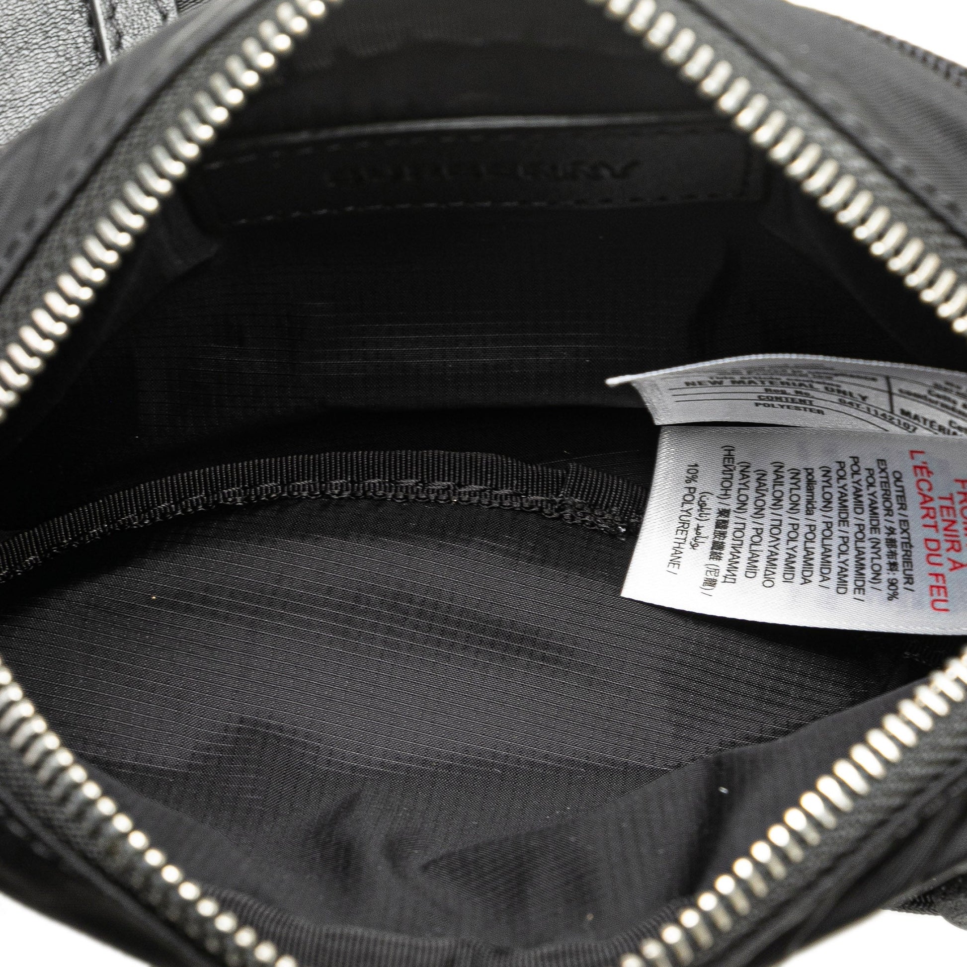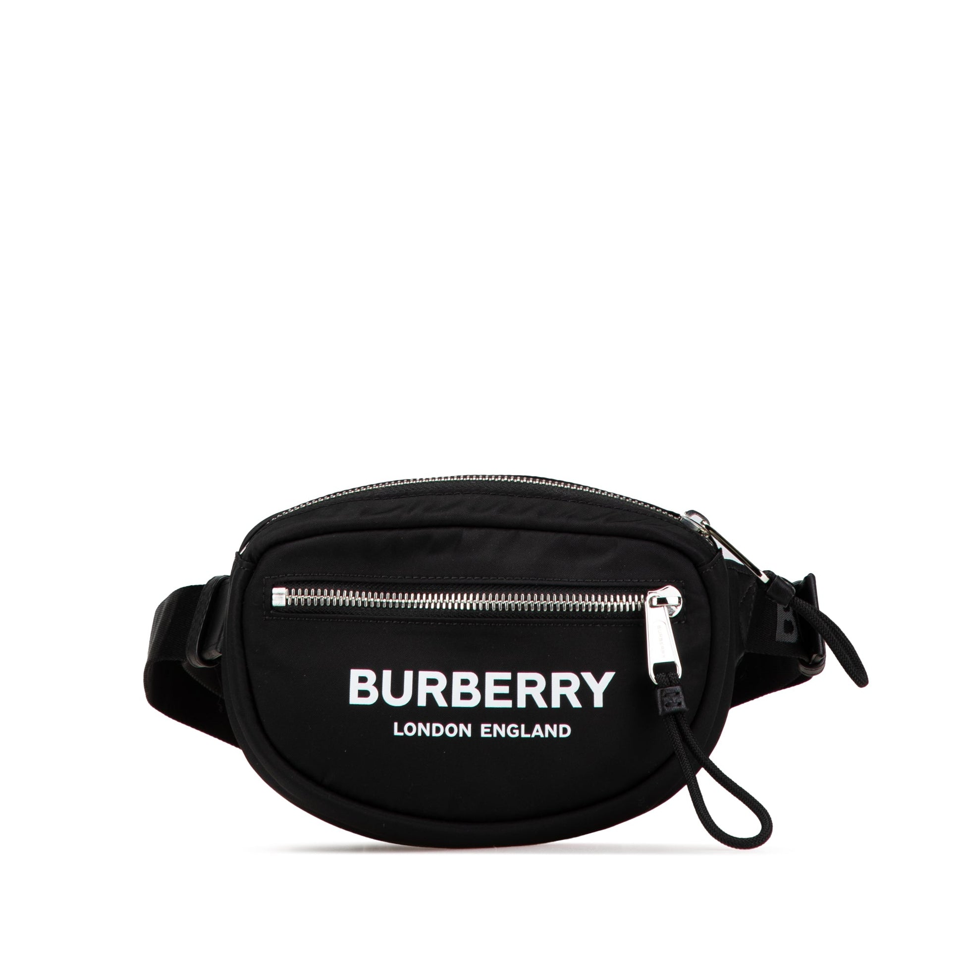 Product Details: Black Burberry Nylon Logo Cannon Belt Bag. This belt bag features a nylon body, an adjustable flat waist strap, a top zip closure, and an exterior front zip pocket. 4.3" L x 7.1" W x 1.4" D. Serial number CNSUPLEASDON.