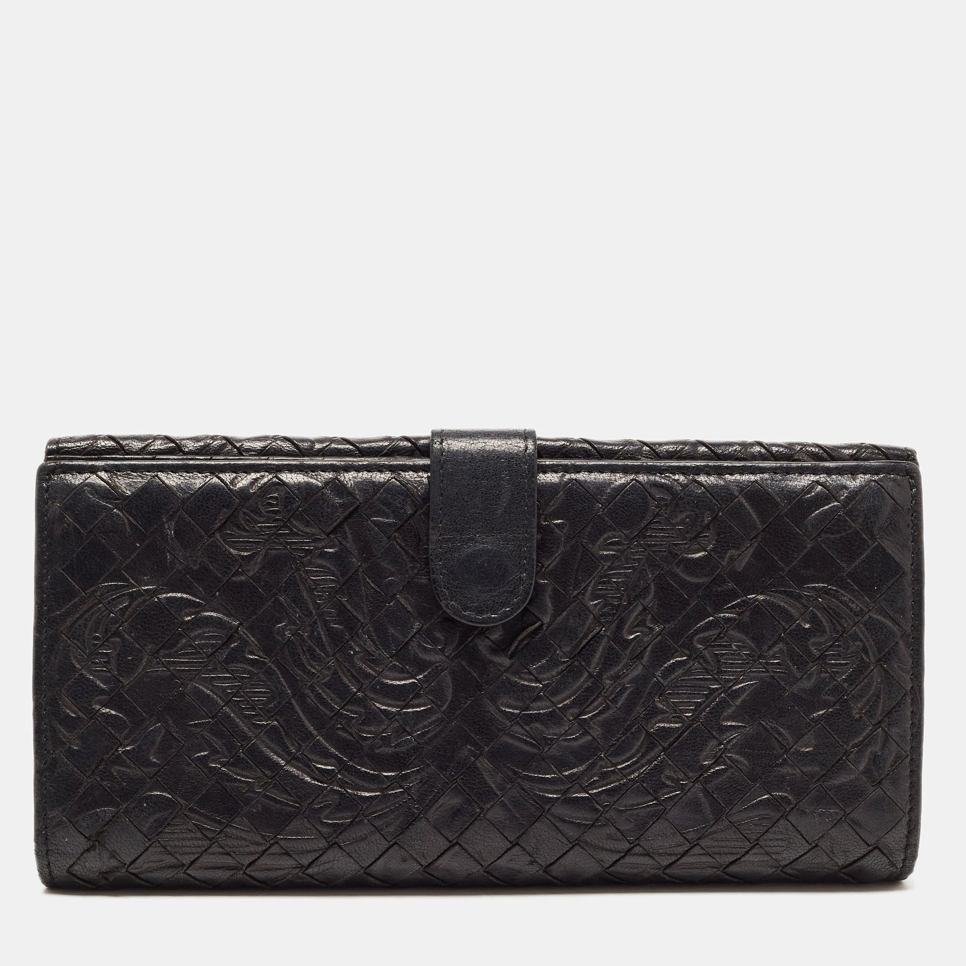 Bottega Veneta Black Intrecciato Leather Flap Continental Wallet