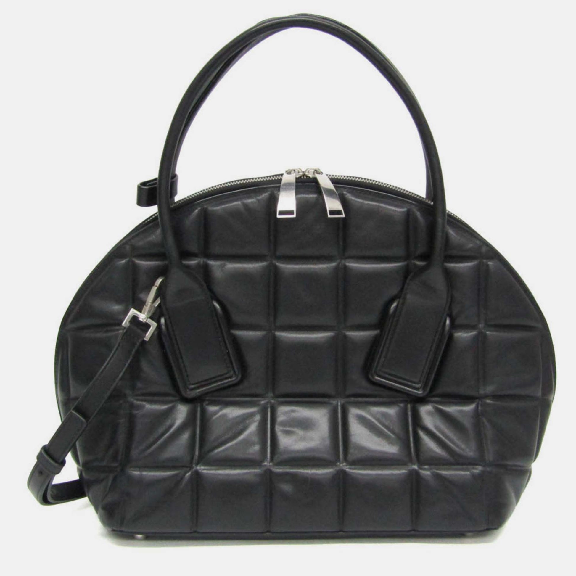 Bottega Veneta Black Padded Leather Medium BV Swoop Top Handle Bag