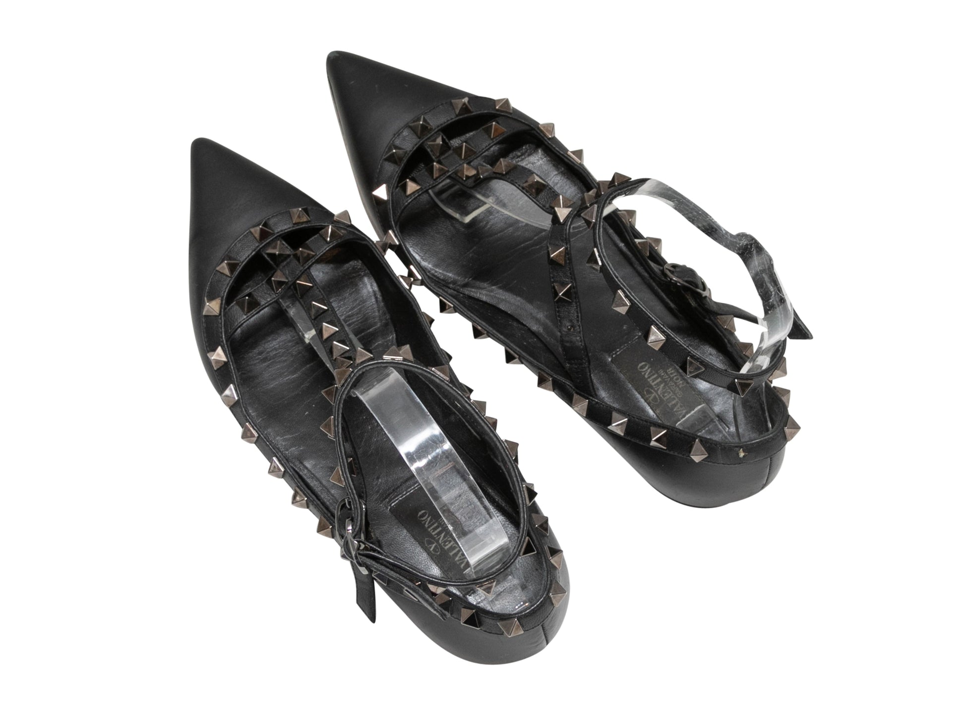 Black Valentino Pointed-Toe Leather Rockstud Flats Size 38