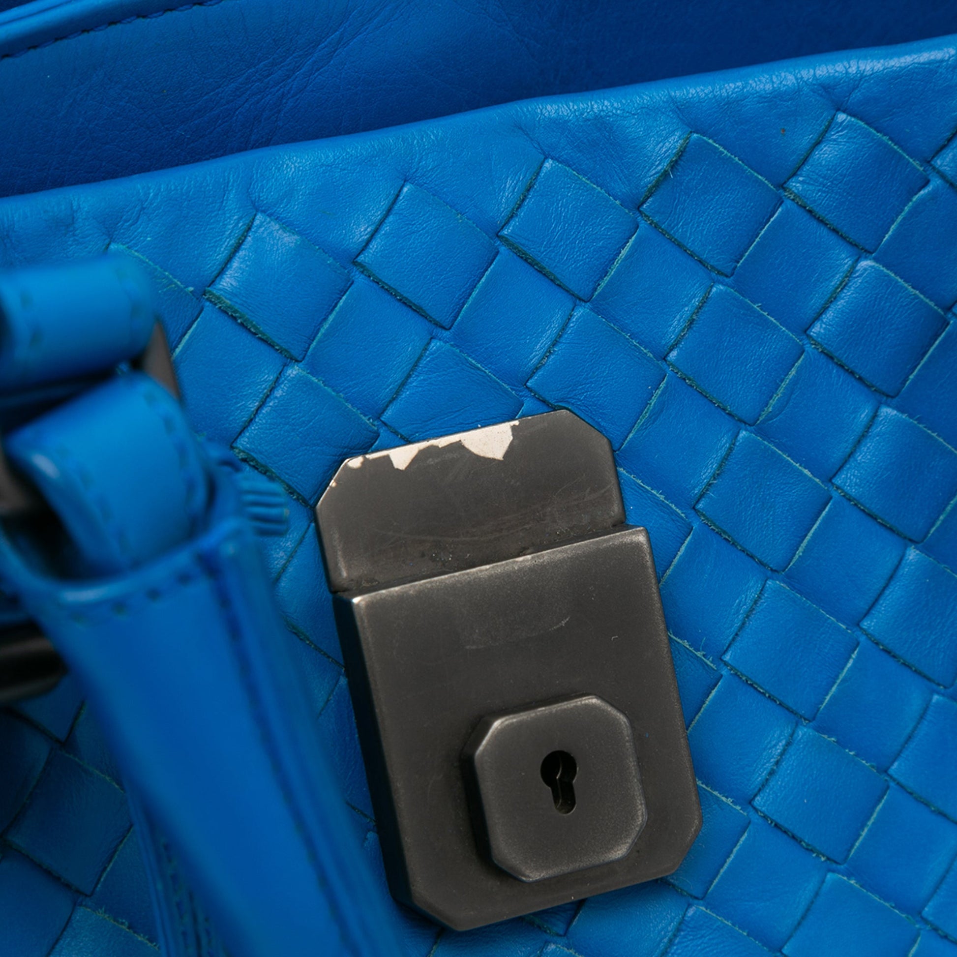 Please note this is a item that may display signs of wear consistent with the condition listed above and shown in photos. Designer Revival this is an Blue Bottega Veneta Small Nappa Intrecciato Roma Satchel or . .