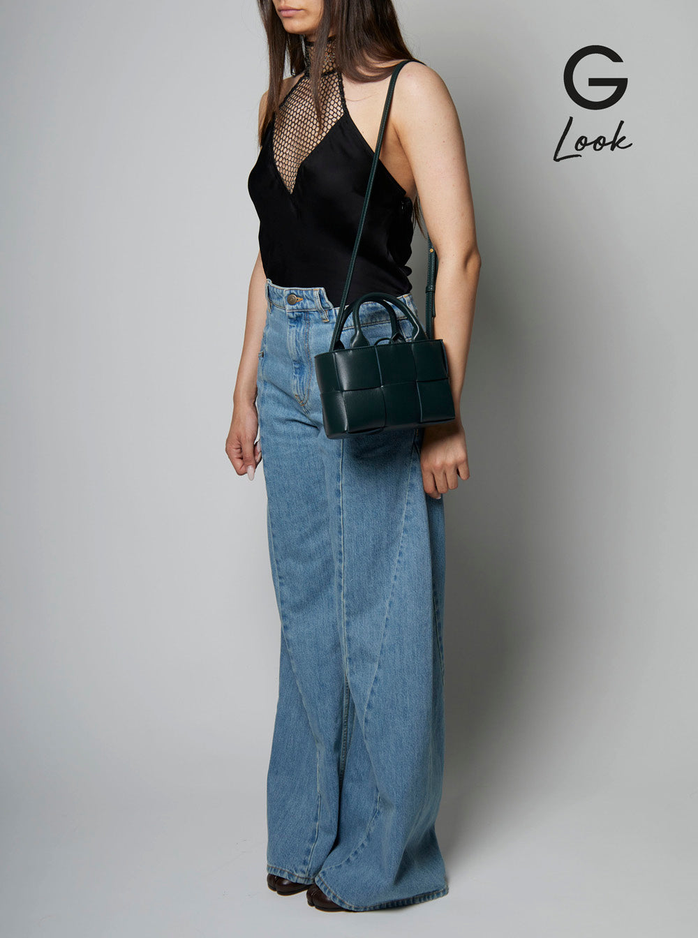 Handbag Two top handles Intreccio motif Detachable zip pouch One main inner compartment Gold tone metalware Dark green Leather Dimensions: 13x20x7 cm