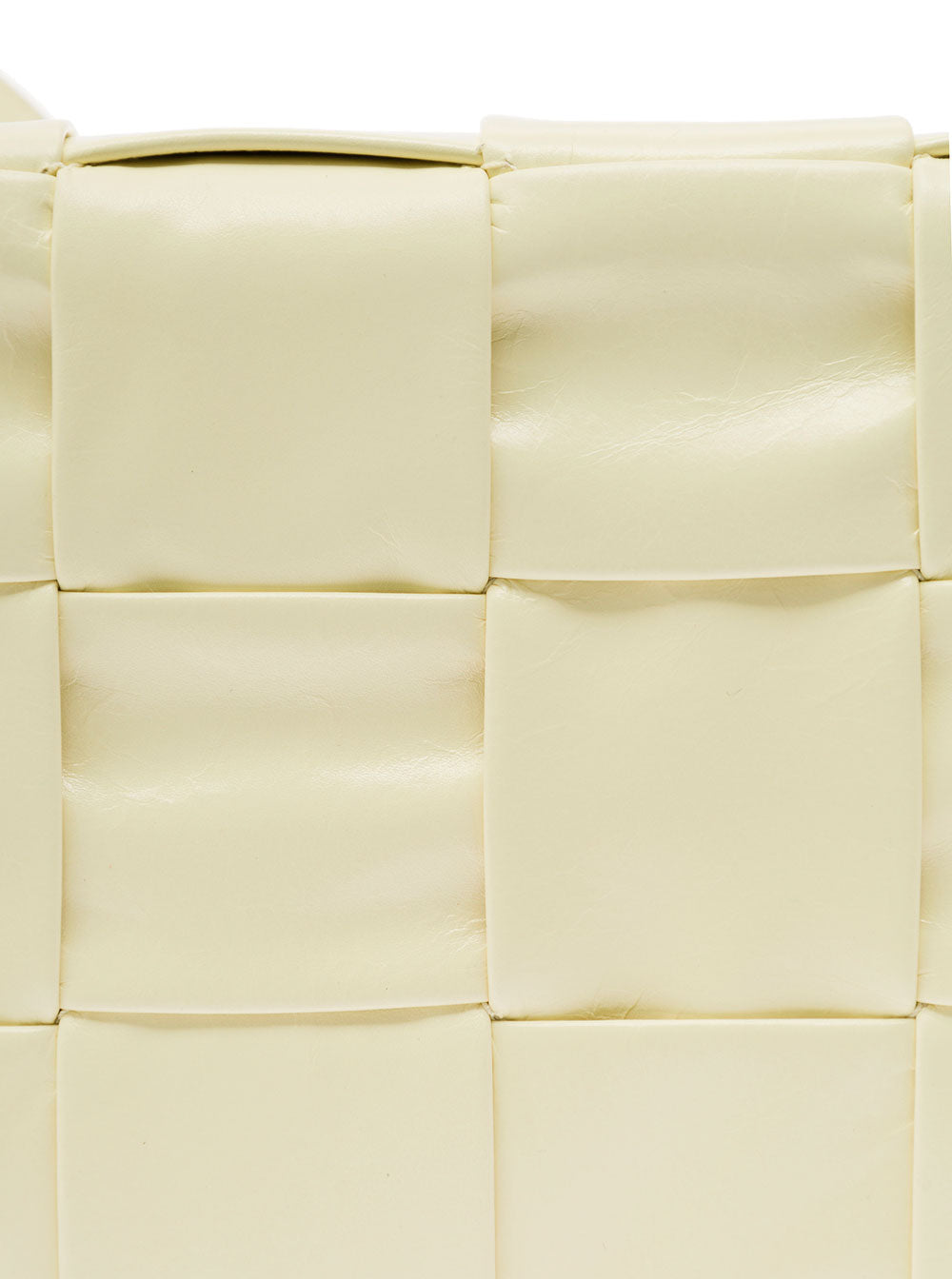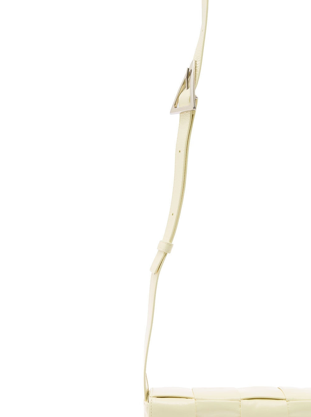 Cross-body bag White Intrecciato design Magnetic closure One main compartment Single interior card slot Gold-tone hardware Leather Dimensions: 12x8x4 cm Strap: 50 cm