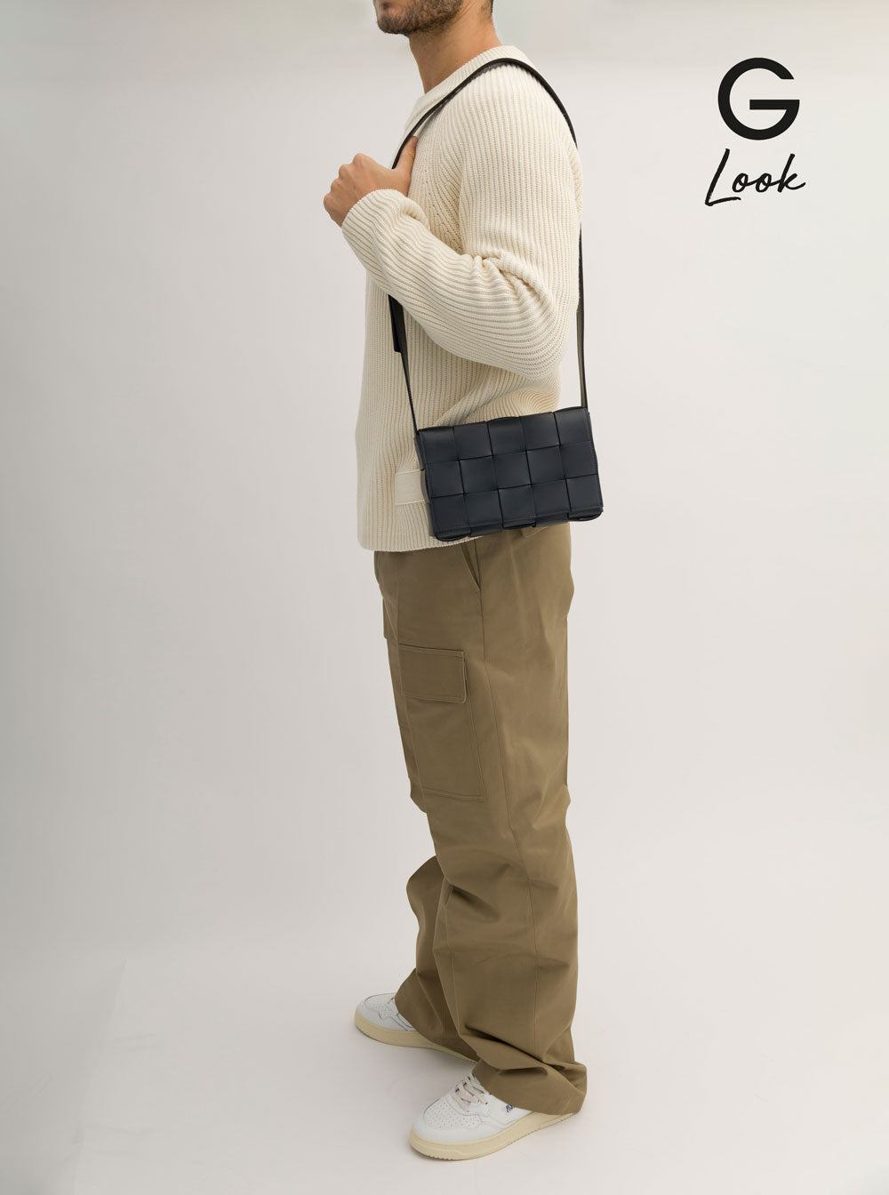 Bottega Veneta Men 'Casette' Black Medium Cross Body Bag In Leather Man