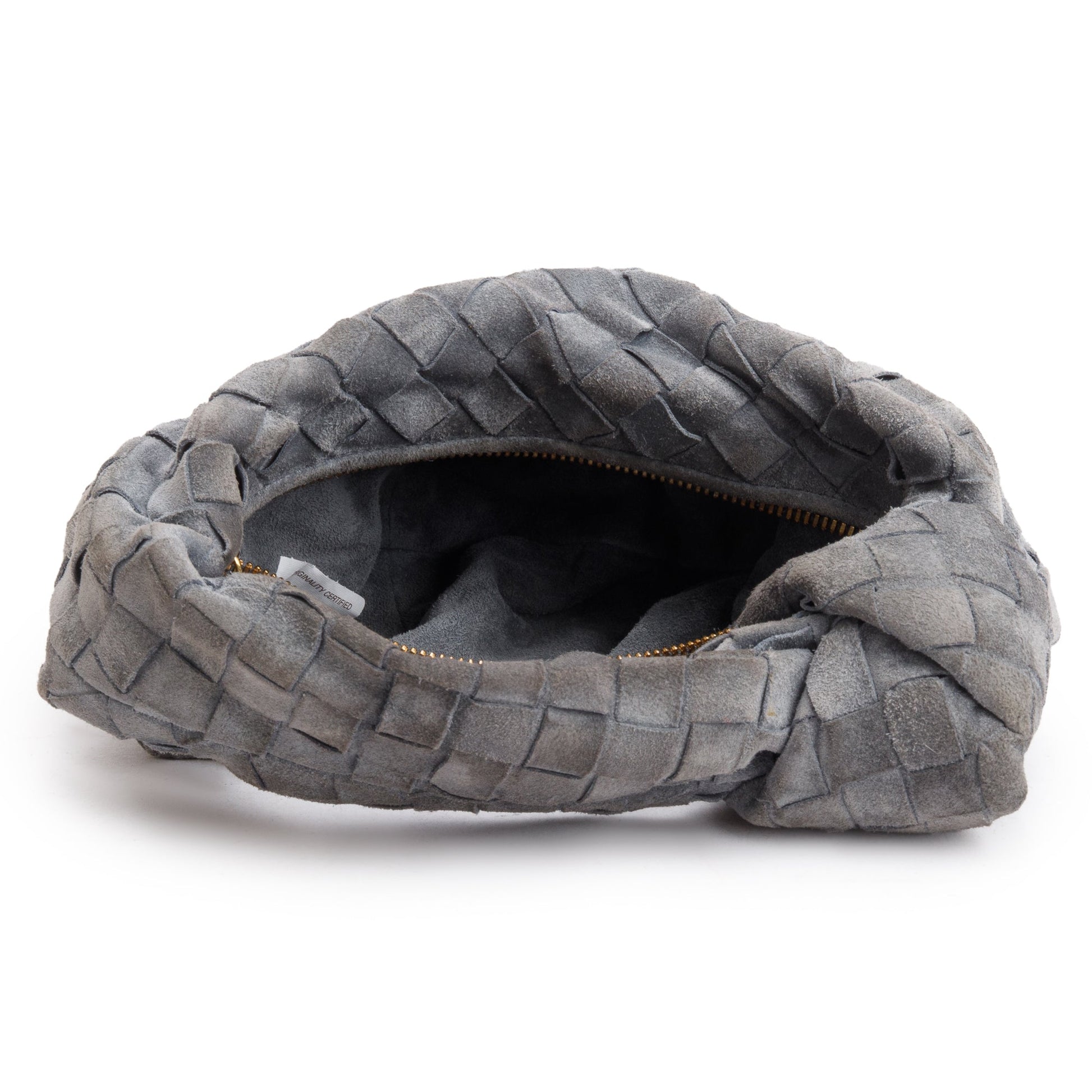 Bottega Veneta Grey Suede Intrecciato Leather Mini Jodie Bag