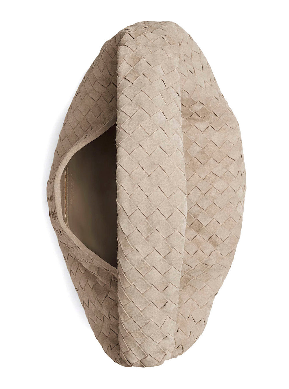Shoulder bag Beige One top handle Magnetic closure Intrecciato motif Suede Dimensions: 54x24x13 cm Handle drop: 27 cm