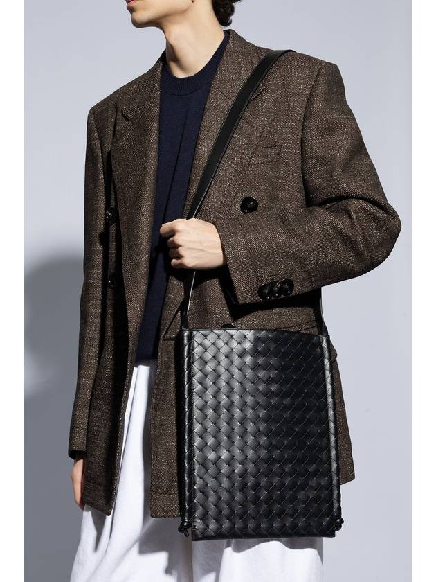 Product Name: Intrecciato Flat Loop Large Leather Cross Bag Black