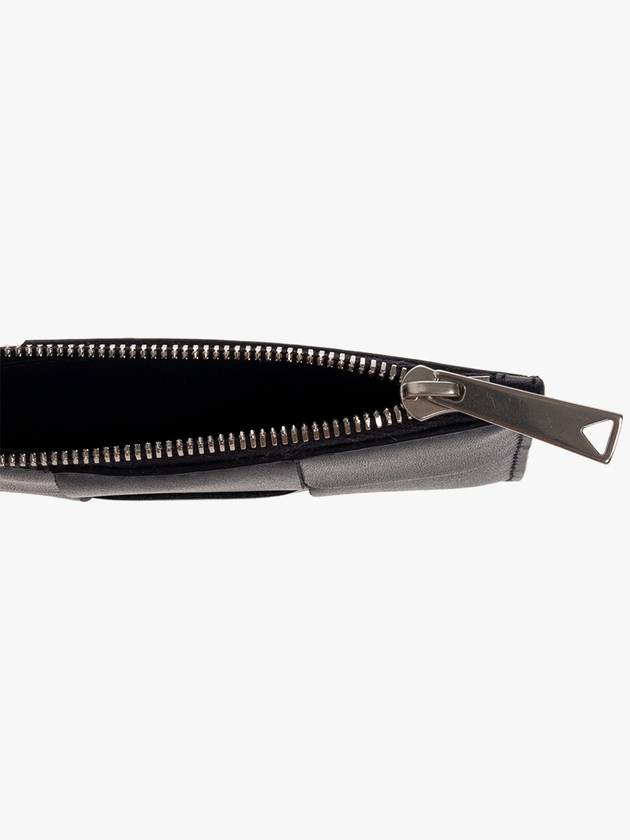 Product Name: Intrecciato Leather Silver Zipper Card Wallet Navy