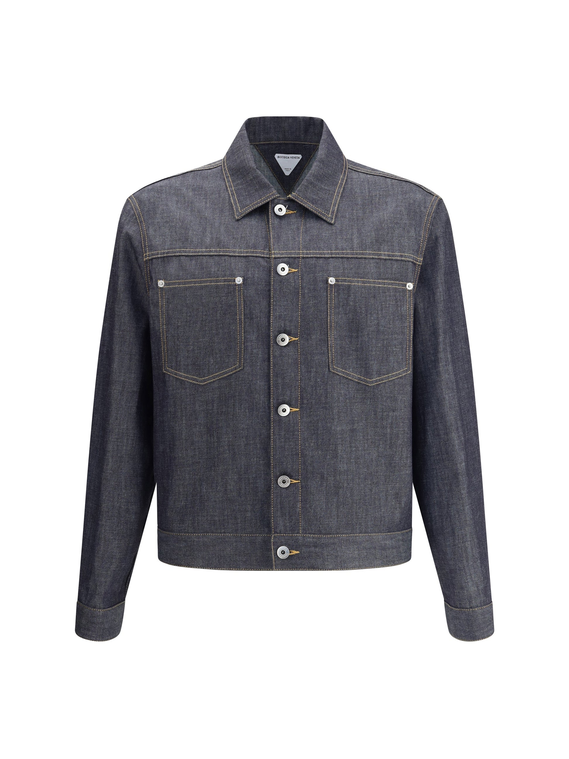 Cotton jacket from Bottega Veneta with a denim-inspired design, perfect for a casual yet refined style. Featuring a classic collar, front button closure and adjustable button cuffs, it combines functionality and style. Two front flap patch pockets complete the garment for a structured and contemporary look.