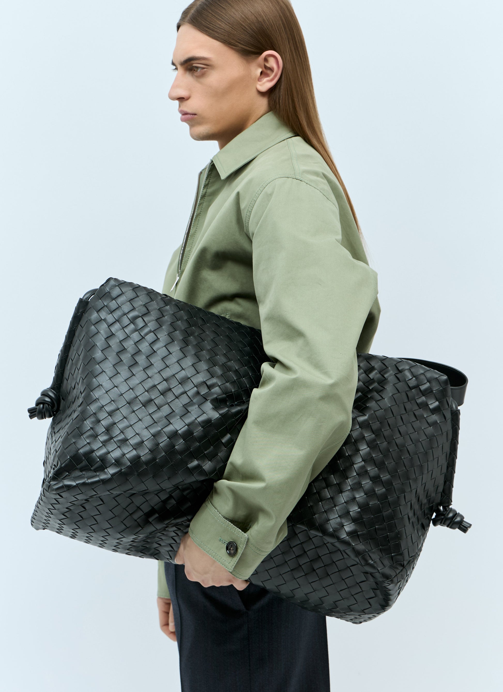 Large Loop weekender bag in Intrecciato-woven leather.
