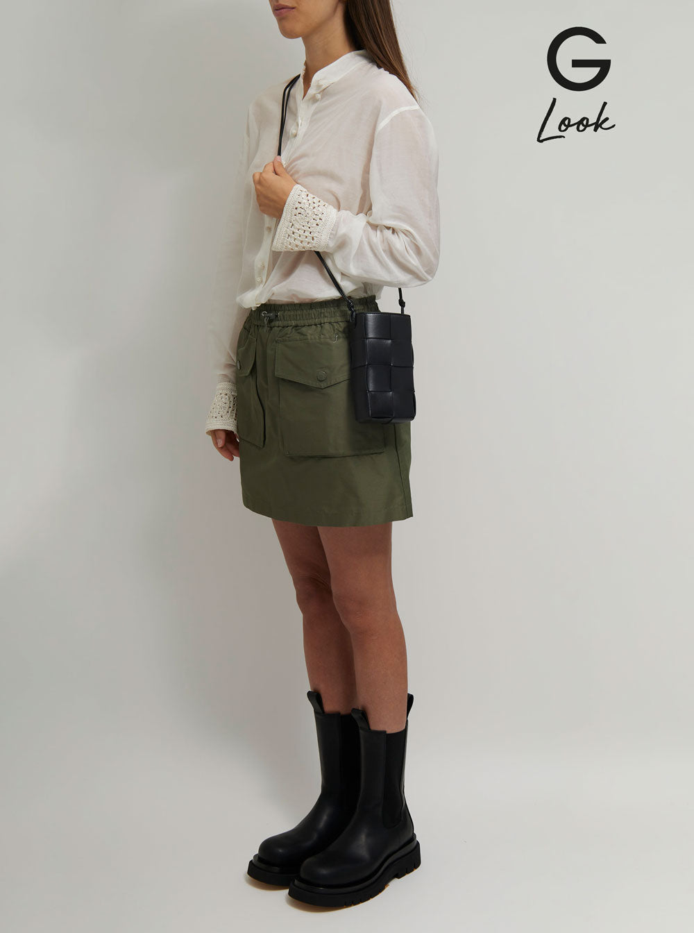 Shoulder bag Matching shoulder strap with knot details Magnetic fastening One main internal compartment Tonal stitching Black Intreccio nappa leather Dimensions: 10x18,5x5 cm Shoulder strap: 54 cm