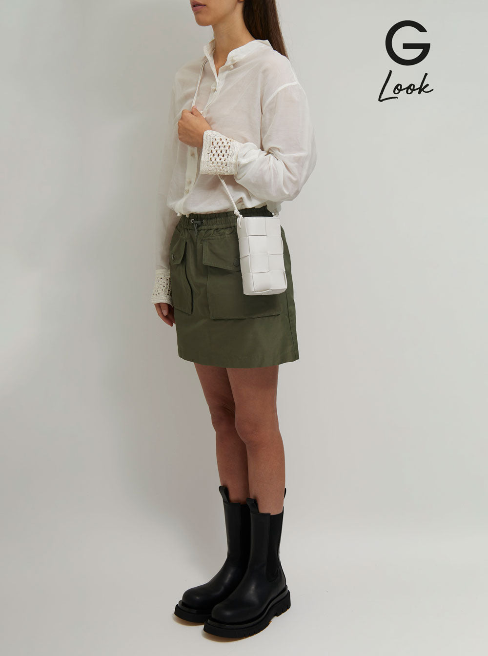 Shoulder bag Matching shoulder strap with knot details Magnetic fastening One main internal compartment Tonal stitching White Intreccio nappa leather Dimensions: 10x18,5x5 cm Shoulder strap: 54 cm