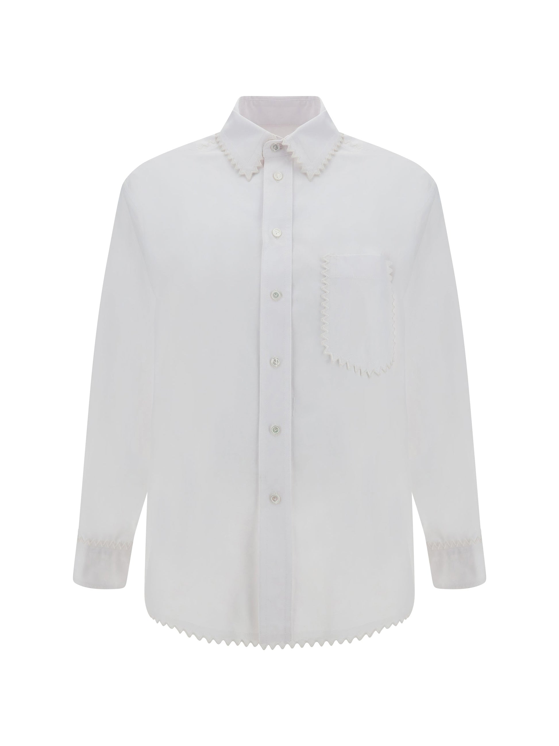 Cotton Compact Shirt by Bottega Veneta featuring classic collar, front button closure, front patch pocket, adjustable button cuffs, knurled-effect embroidered hems and piping, regular fit.