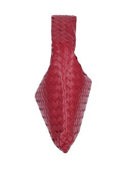 Bottega Veneta 'Hop' medium shoulder bag in red leather with Intrecciato pattern, handle, magnetic closure, inner zip pocket, main inner compartment.