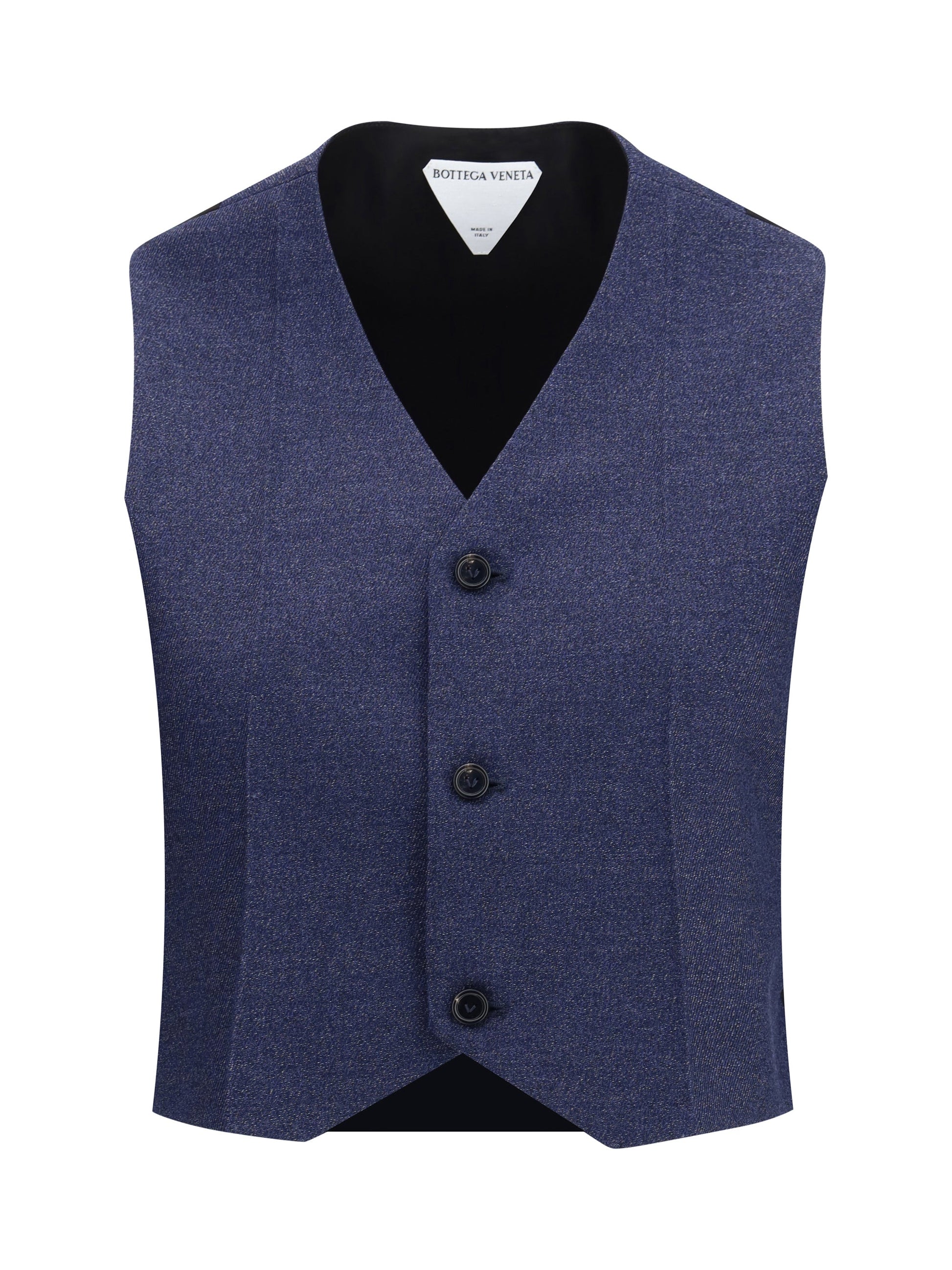 Bottega Veneta's mélange wool drill Vest combines sartorial elegance and workwear inspiration. Featuring a refined denim effect, it has a button closure, slim cut and an adjustable martingale at the back that enhances the silhouette. A versatile and refined garment, ideal for formal looks with a contemporary touch.