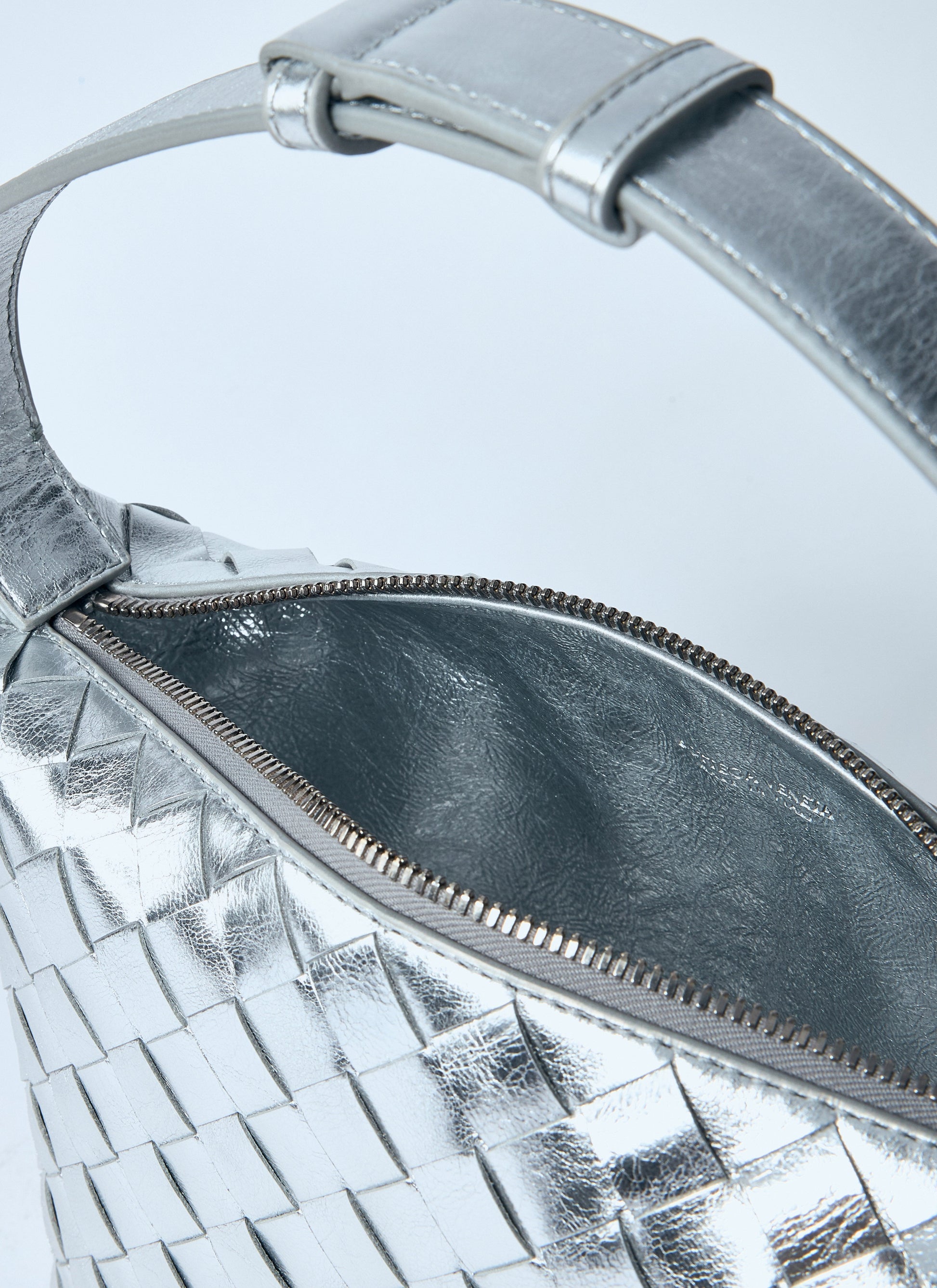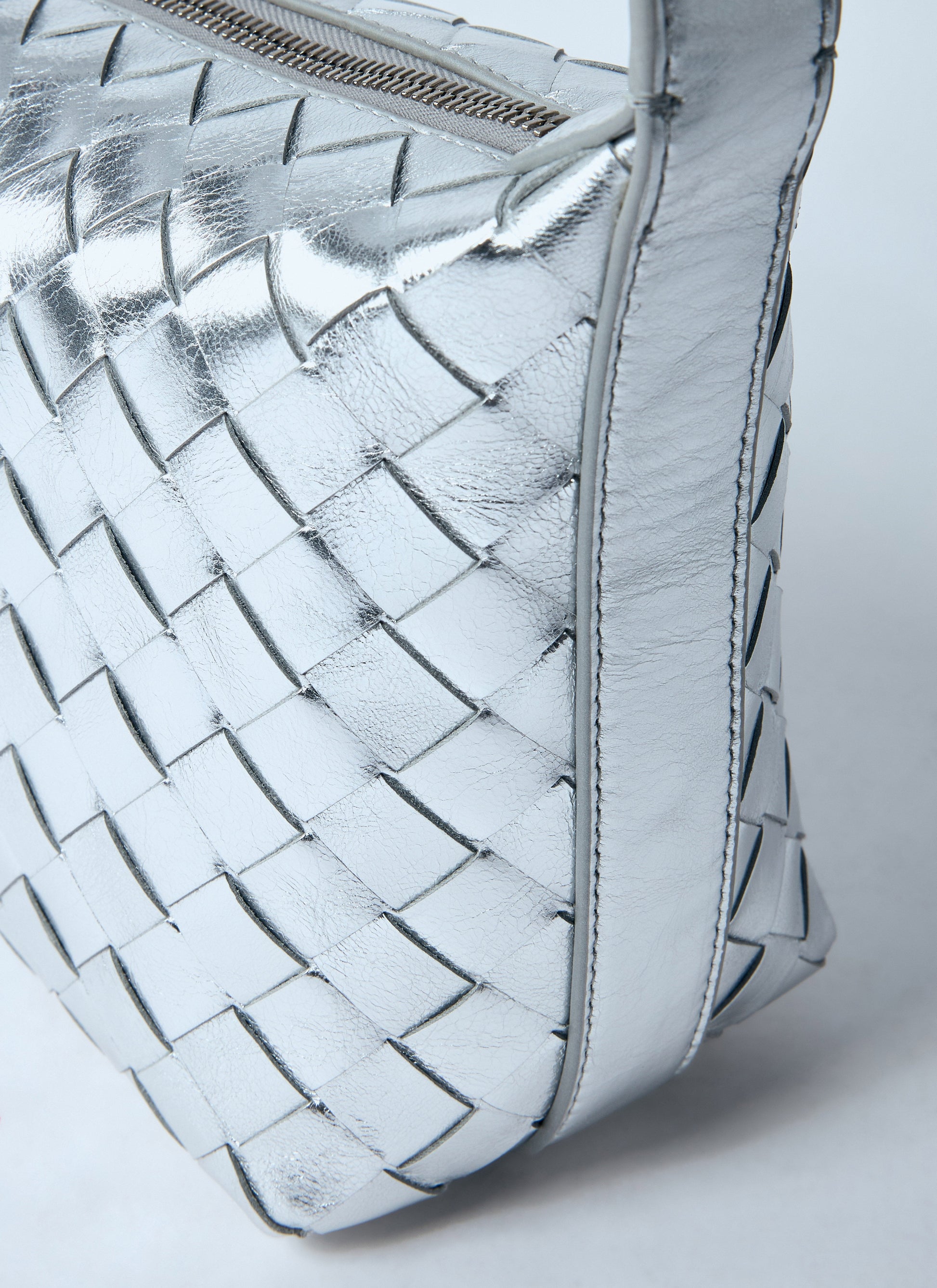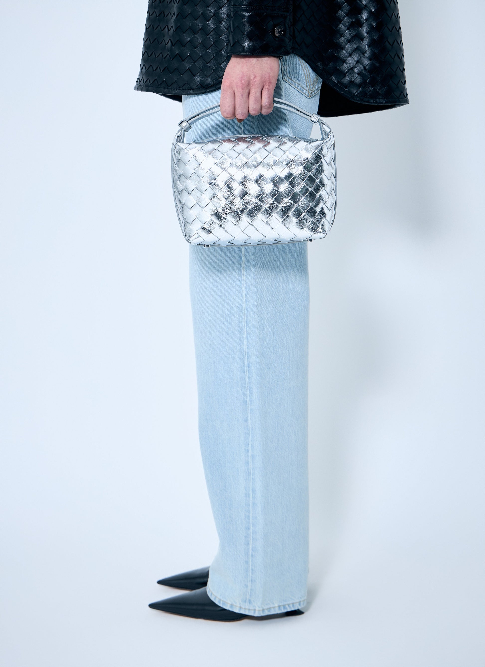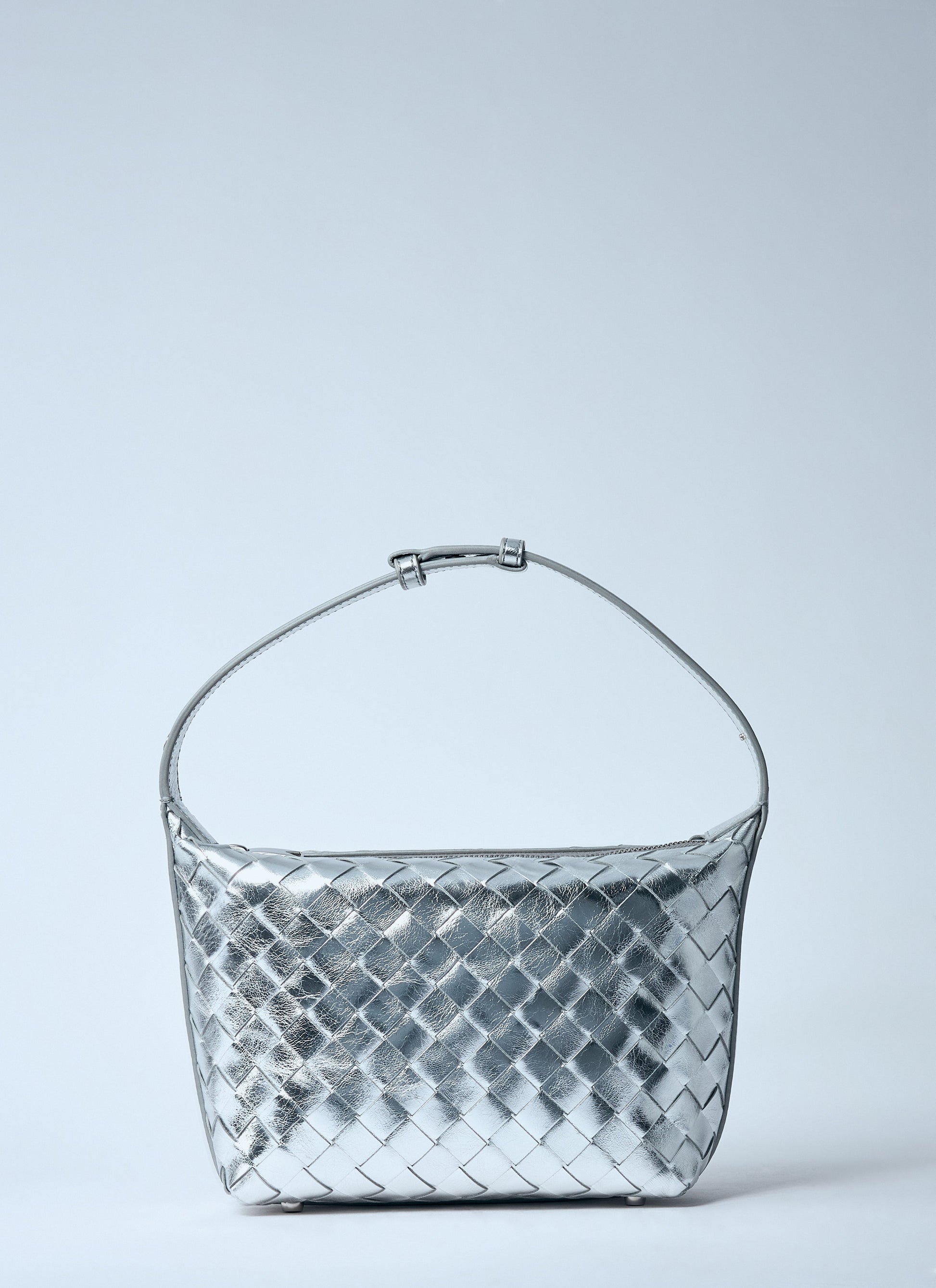 Mini Wallace shoulder bag in Intrecciato woven leather with metallic finish.