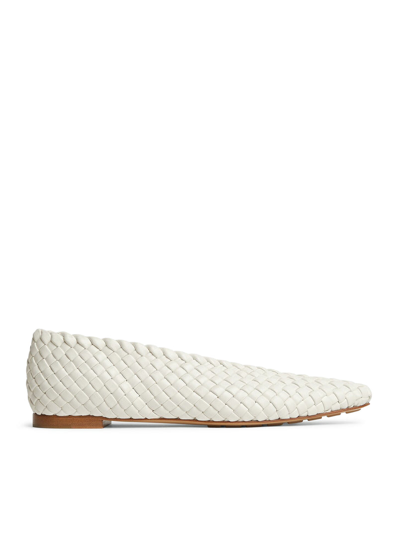 - Padded leather ballerinas with Intreccio motif - Material: Lambskin - Unlined model - Color: White - Leather and injected rubber sole Made in Italy Composition: Lamb Skin 100% Lambskin Color code: 9013 WHITE