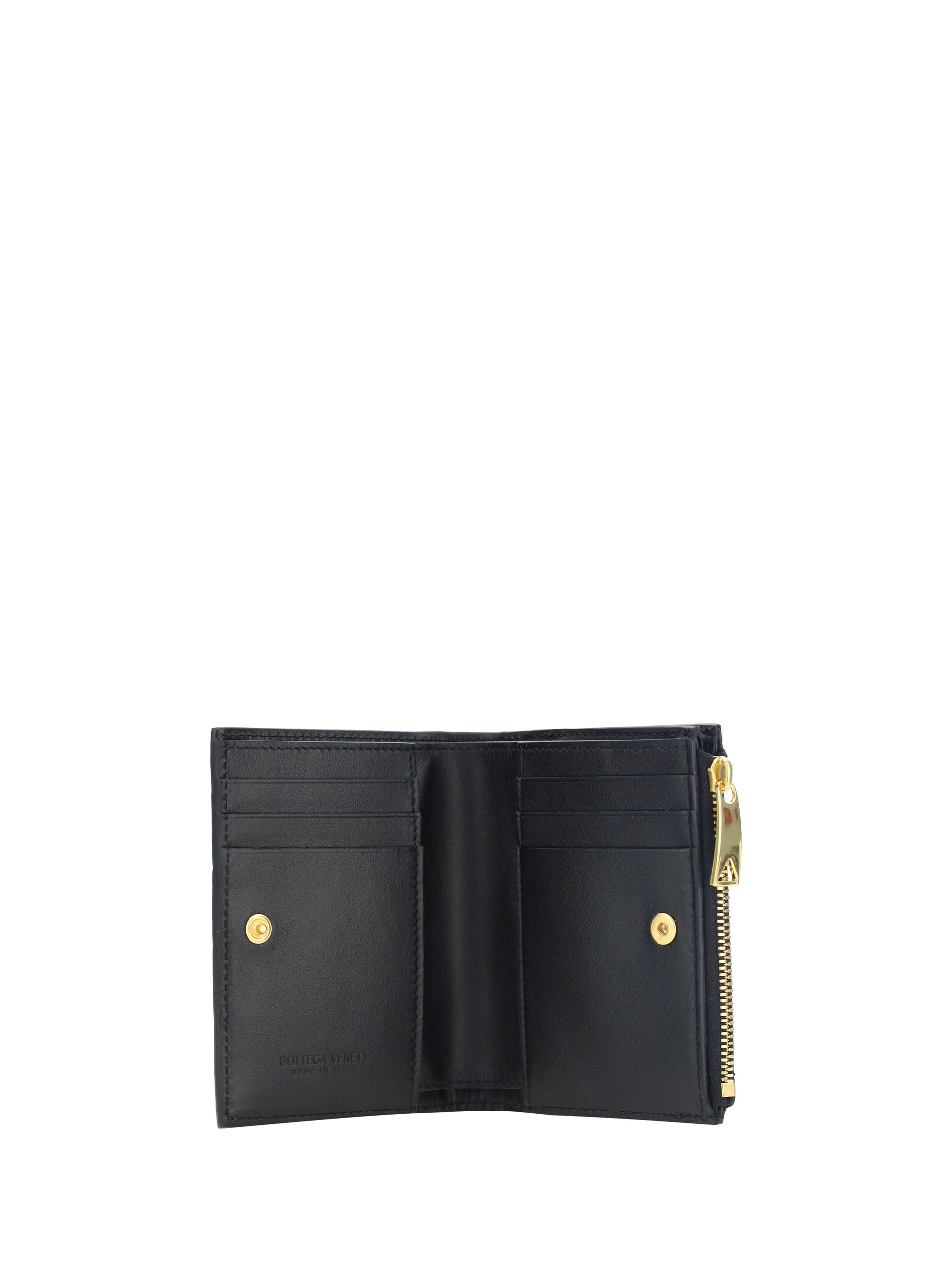 Bottega Veneta's lambskin Wallet combines elegance and functionality with its iconic all-over intrecciato motif. Featuring a double card slot, a bill compartment and a zipped coin pocket, it features a snap button closure and the brand's monogram printed inside. A compact and sophisticated accessory, perfect for those seeking style and practicality.