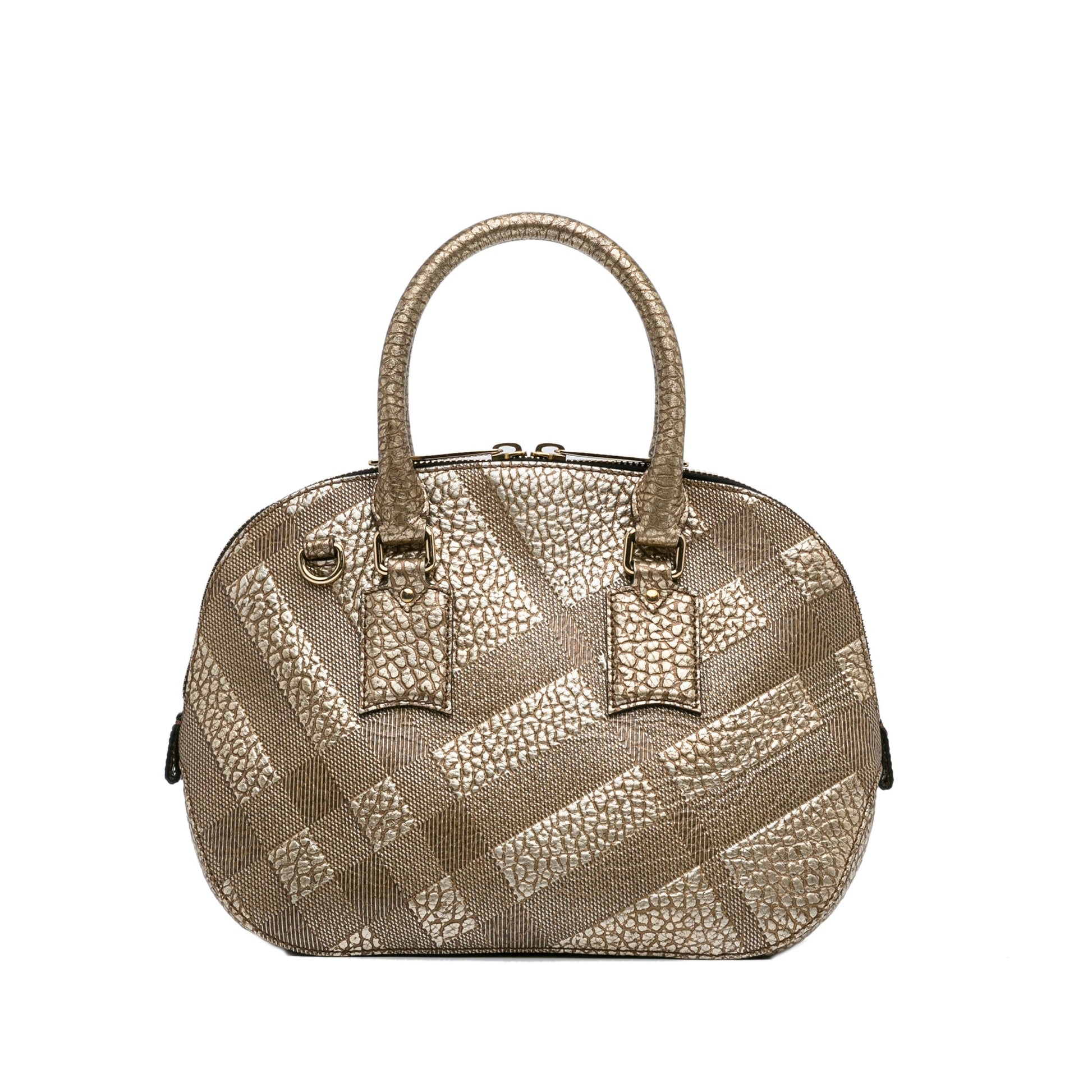Brown Burberry Embossed Leather Orchard Handle Bag