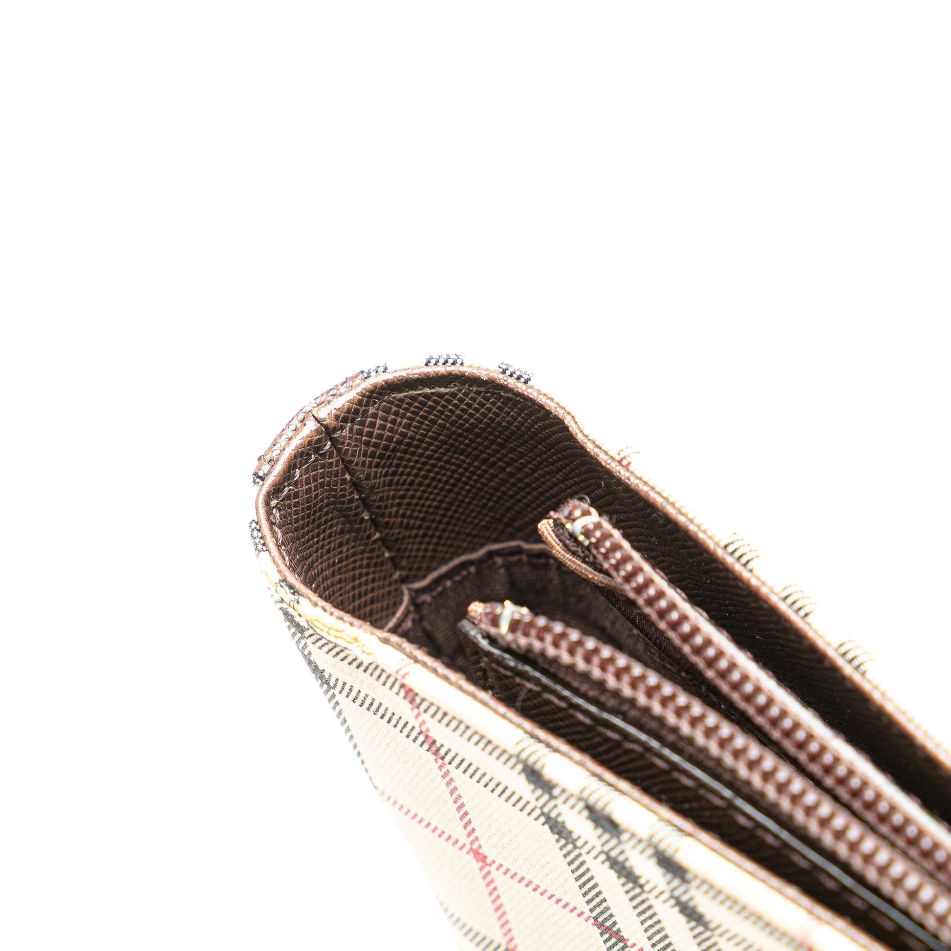 Product Details: Brown Burberry House Check Canvas Tote. This tote bag features a canvas body with leather trim, flat leather shoulder straps, an open top, an interior zip compartment, and interior zip and slip pockets. 9.1" L x 10.2" W x 3.5" D, 7.9" drop.