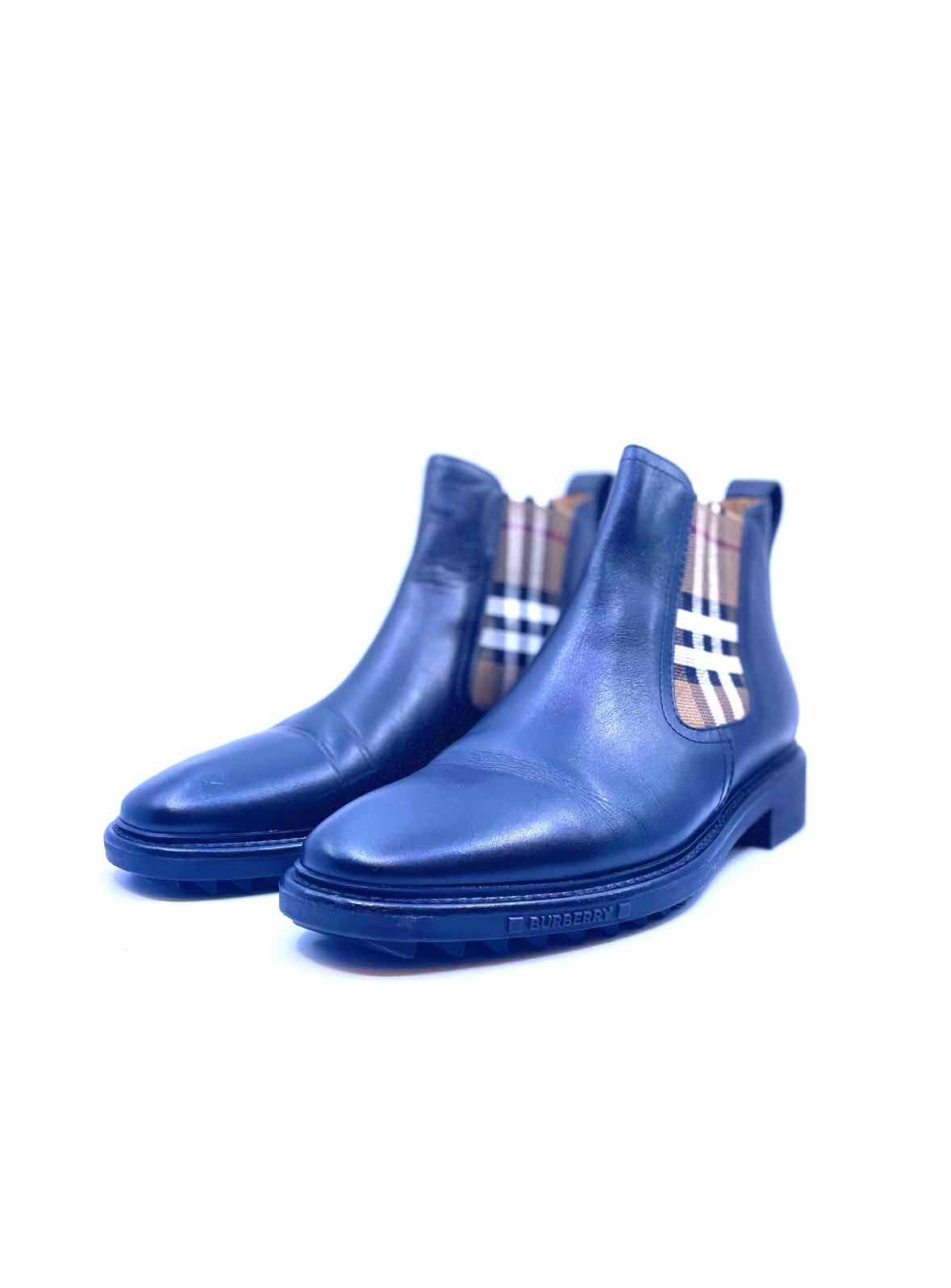 BURBERRY Size 11 Black Leather Solid Ankle Boot