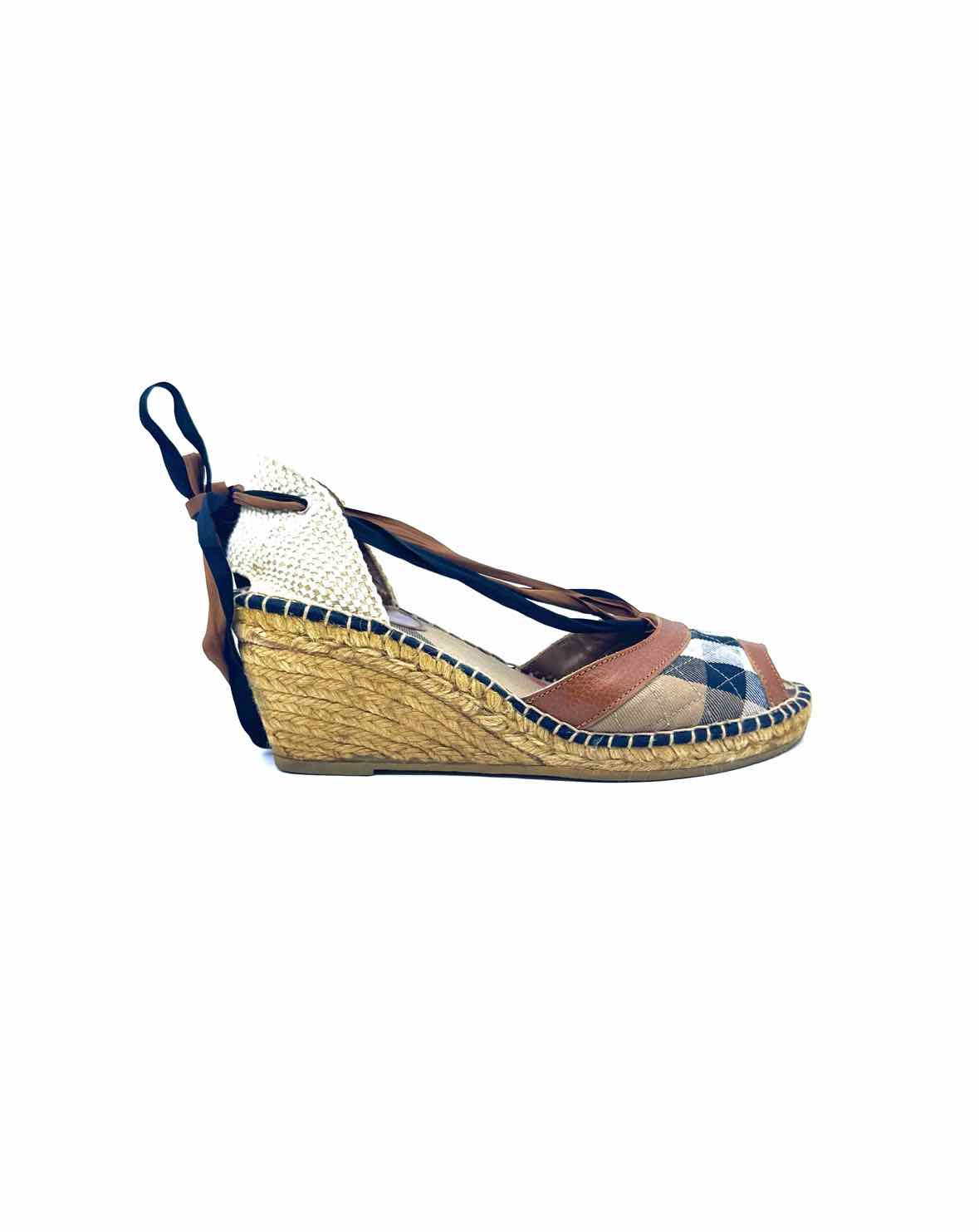 BURBERRY Size 11 Brown, black Canvas Plaid Wedge