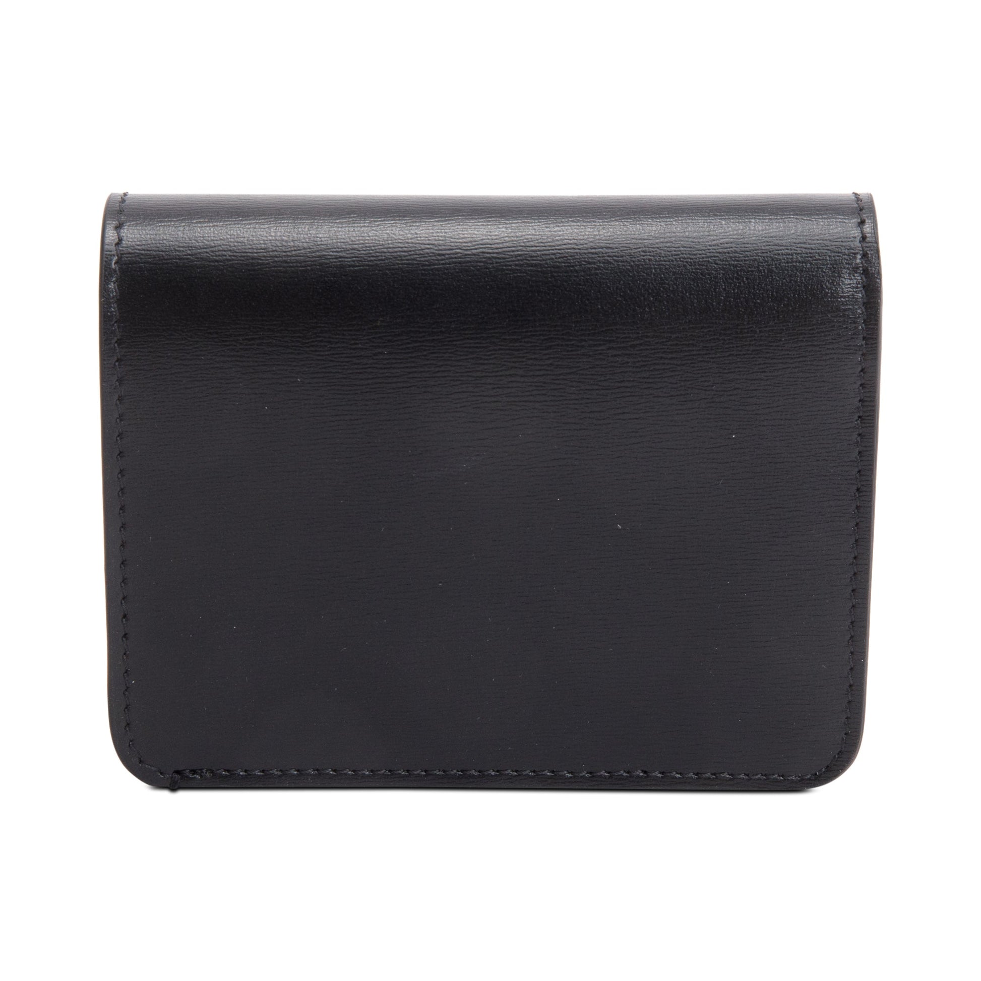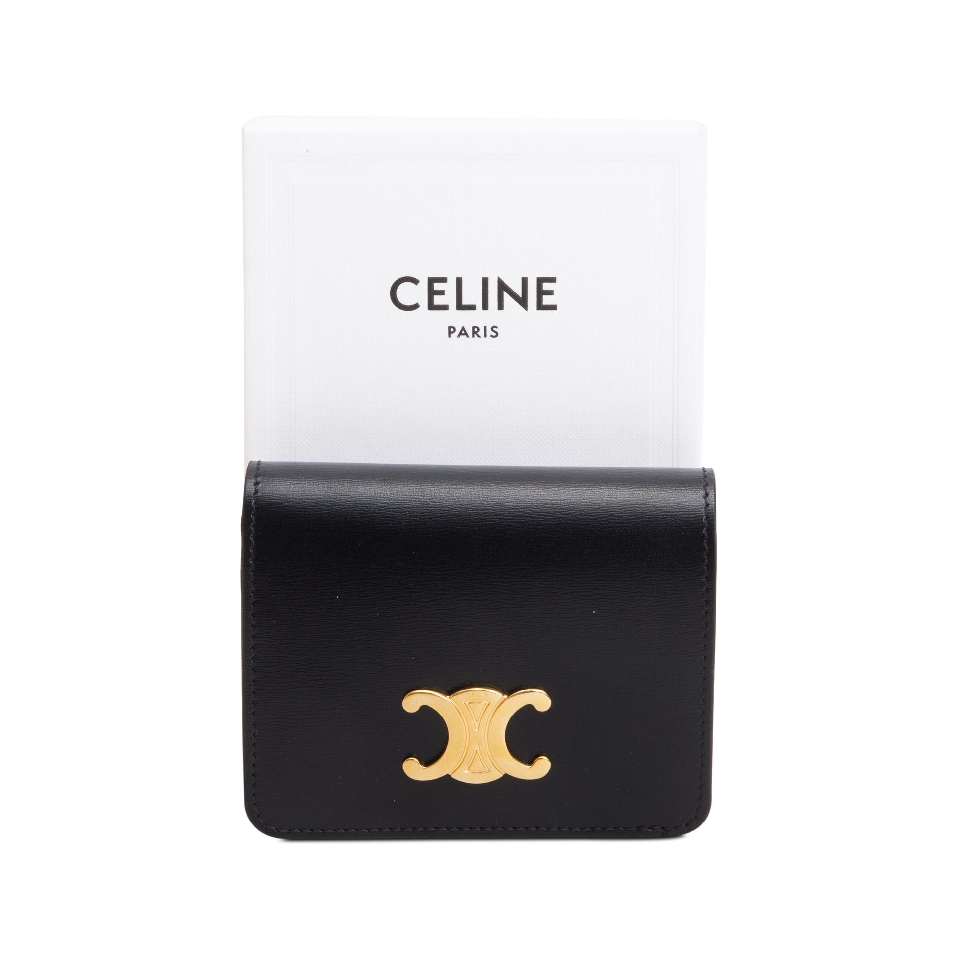 Celine 2023 Black Shiny Calfskin Leather Triomphe Compact Wallet w/ Box & Receipt