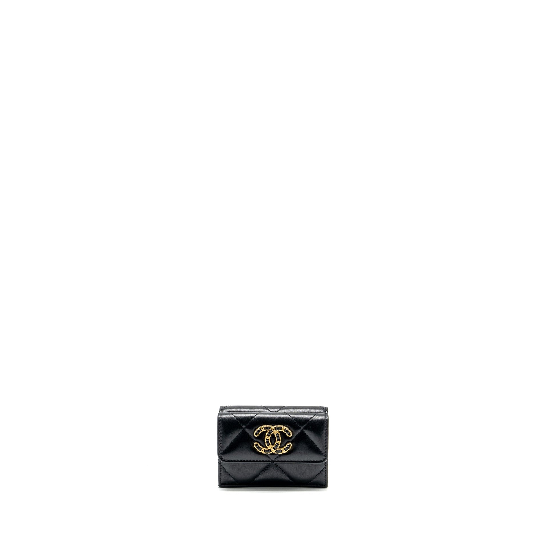 Chanel 19 compact wallet lambskin black GHW (microchip)