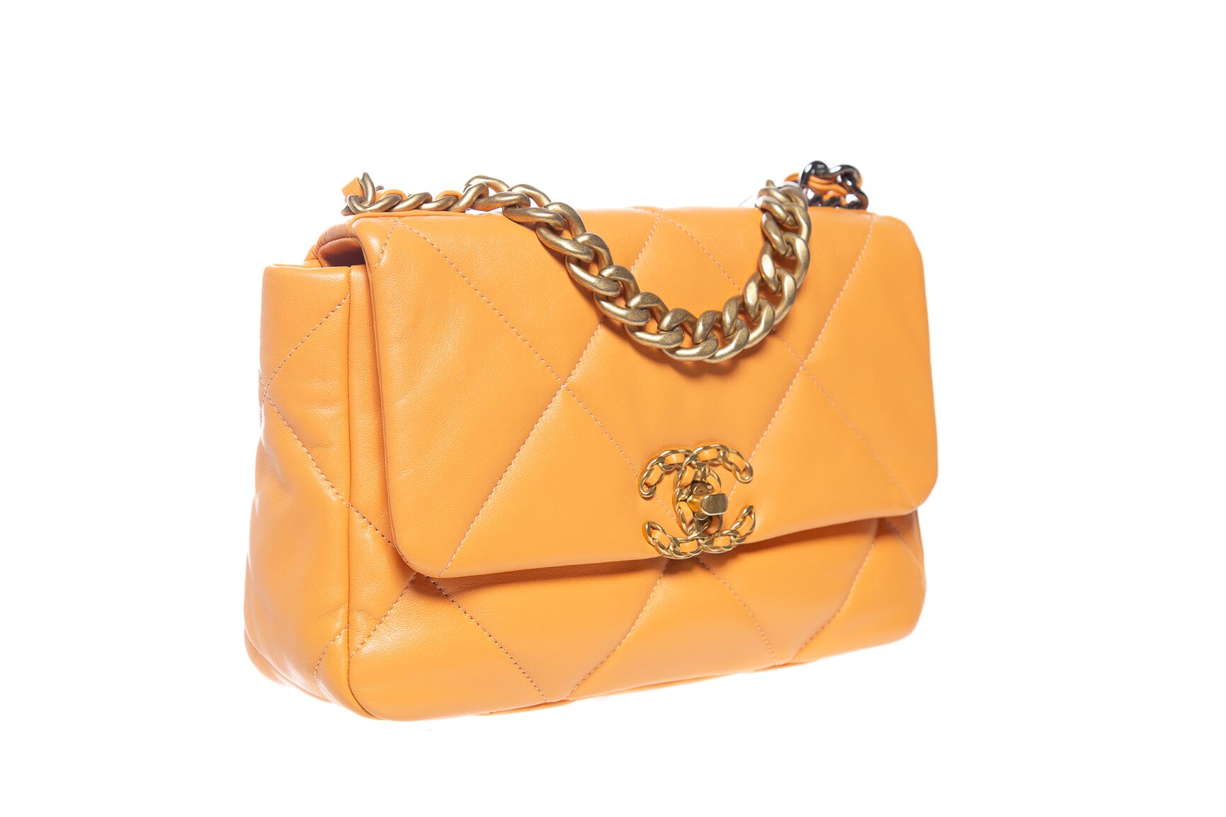 2024 Chanel 19 Orange Lambskin Leather Handbag - With Box. This item is in very good condition condition.