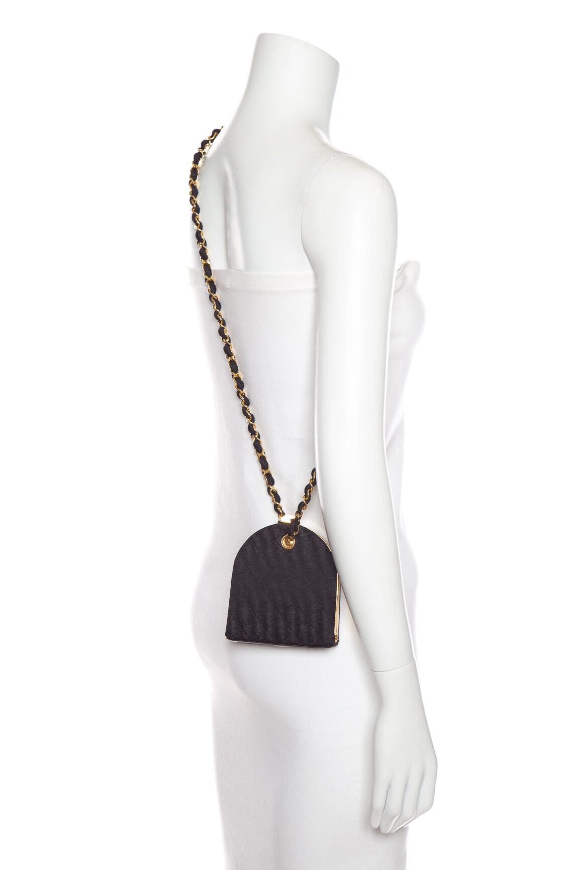 Chanel 1990 Vintage Black Quilted Canvas Mini Box Clutch Bag