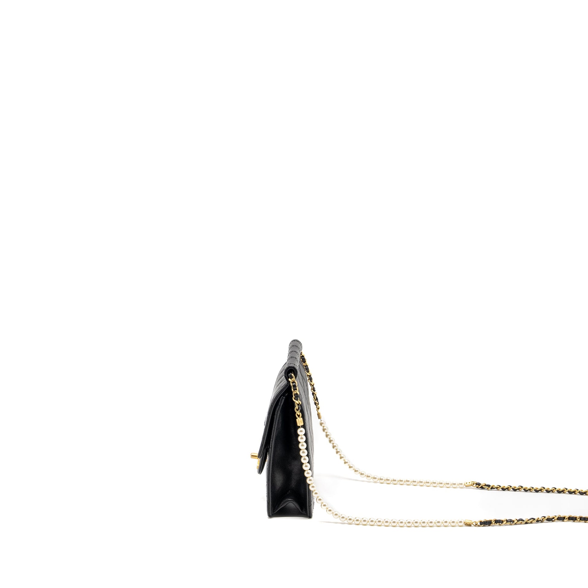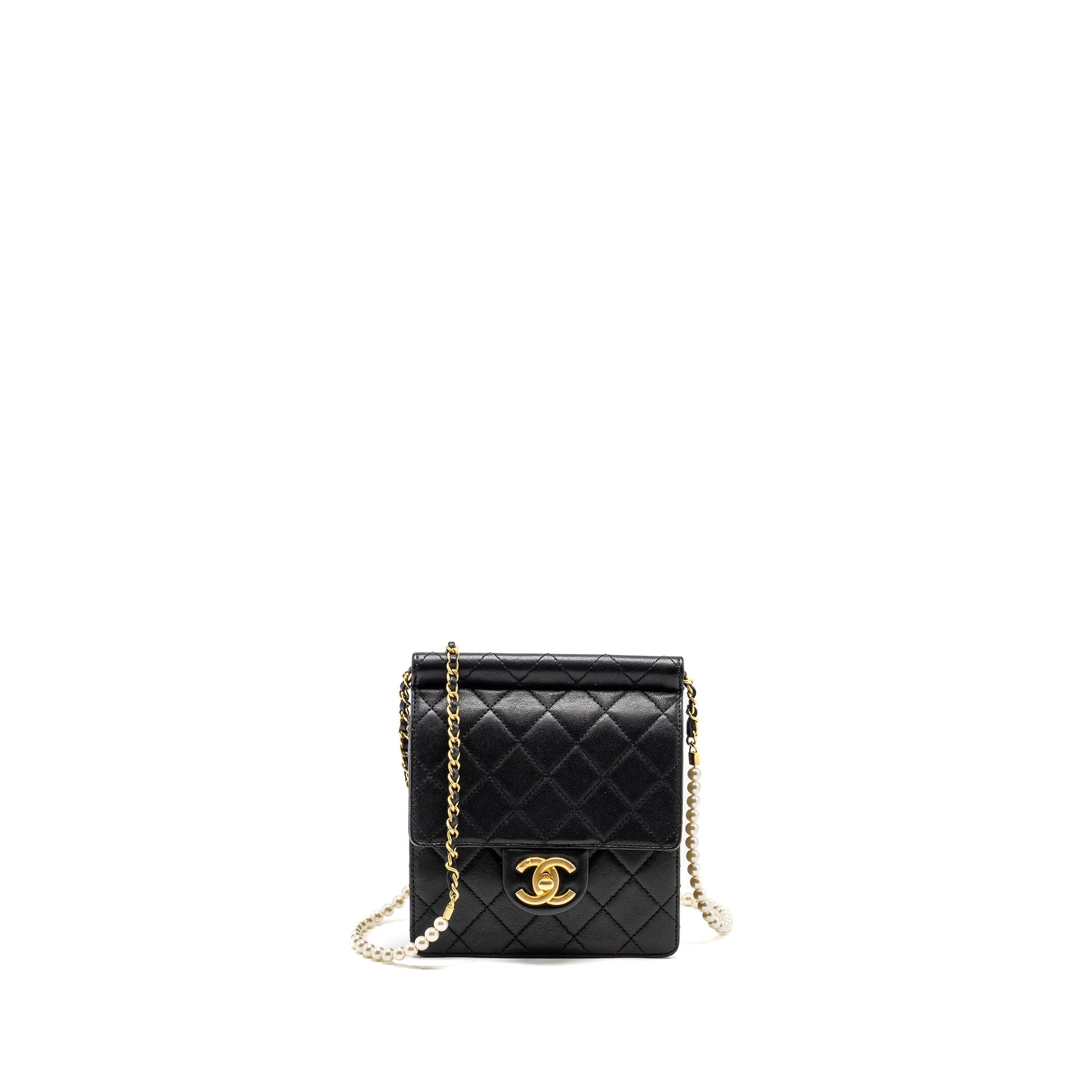 Chanel 19S Pearl Chain Quilted Vertical Flap Bag Lambskin Black GHW