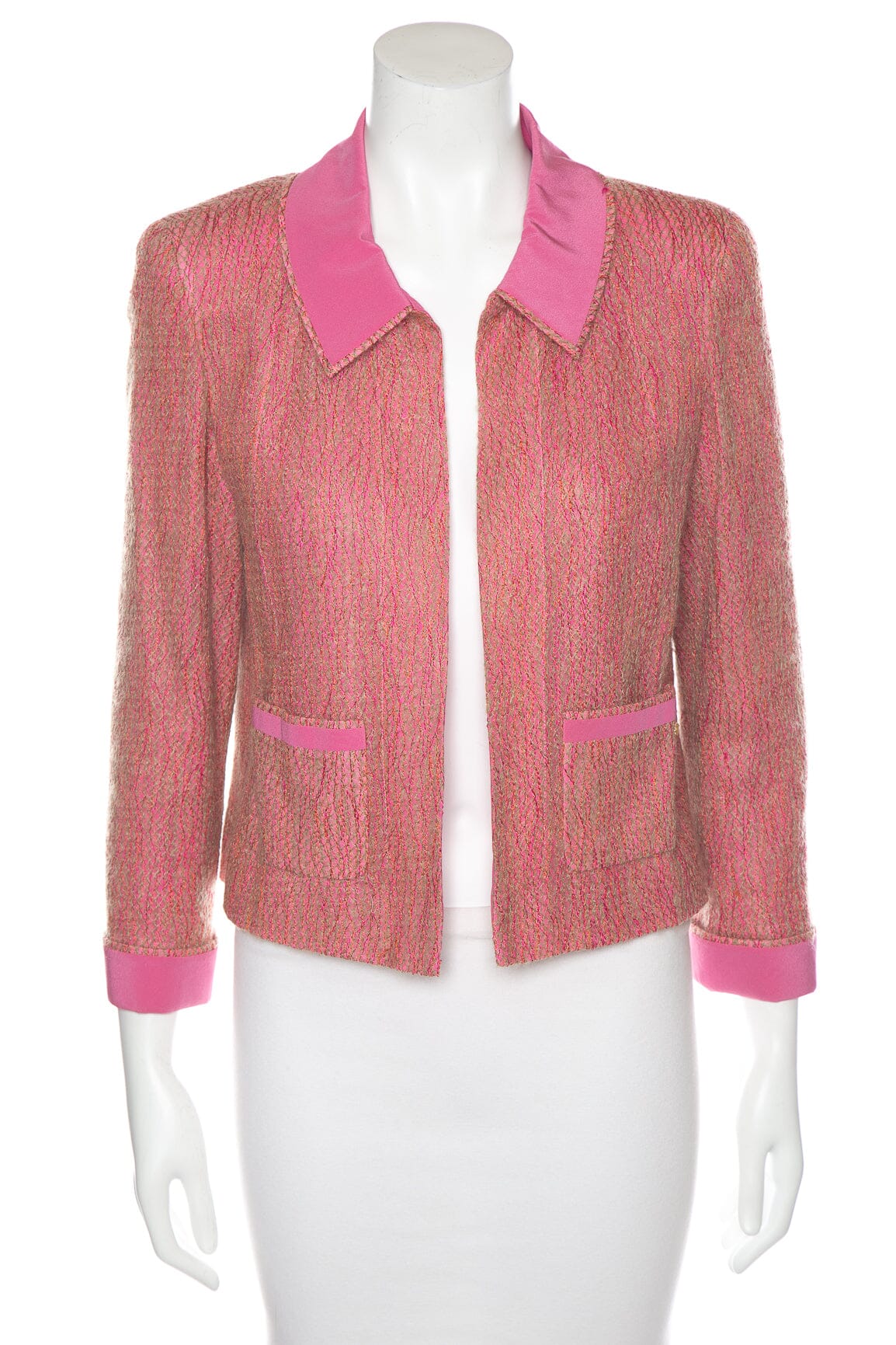 Chanel 2001 Cruise Collection Pink Silk Open Blazer. This item is in very good condition.