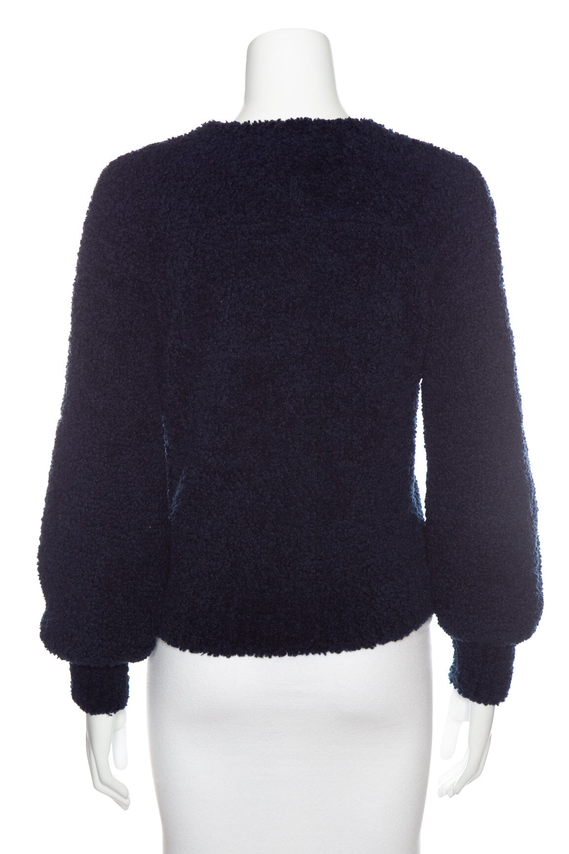 Chanel 2019 Navy w/Red Interlocking CC Logo Shearling Pullover Sweater. This item is in very good condition.