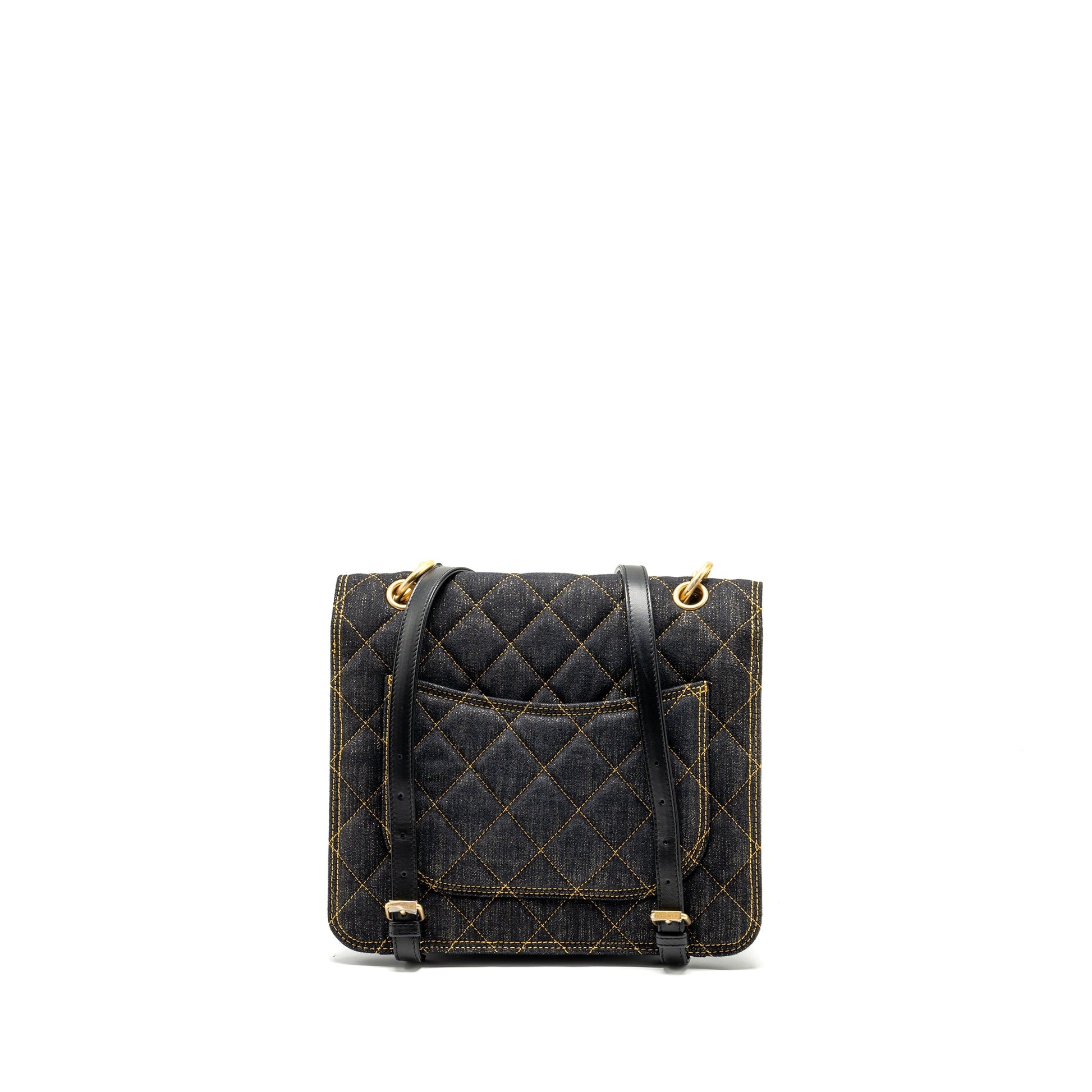 Chanel 23S flap backpack denim dark blue with brushed GHW (microchip)