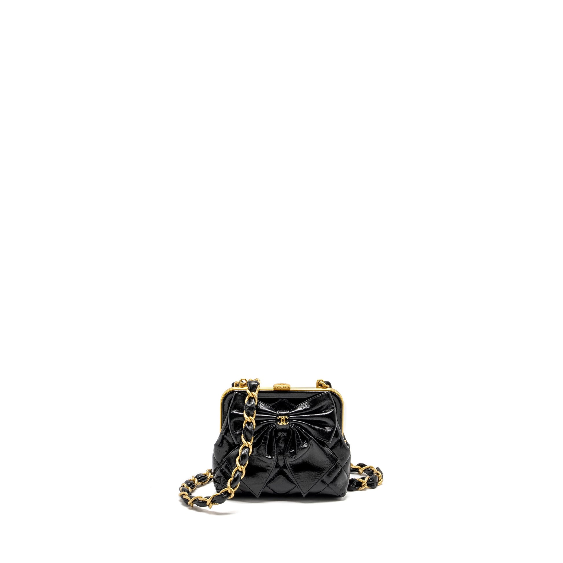 Chanel 24A Bowknot Clutch With Chain patent Crumpled Lambskin/Shiny Lambskin Black GHW (microchip)