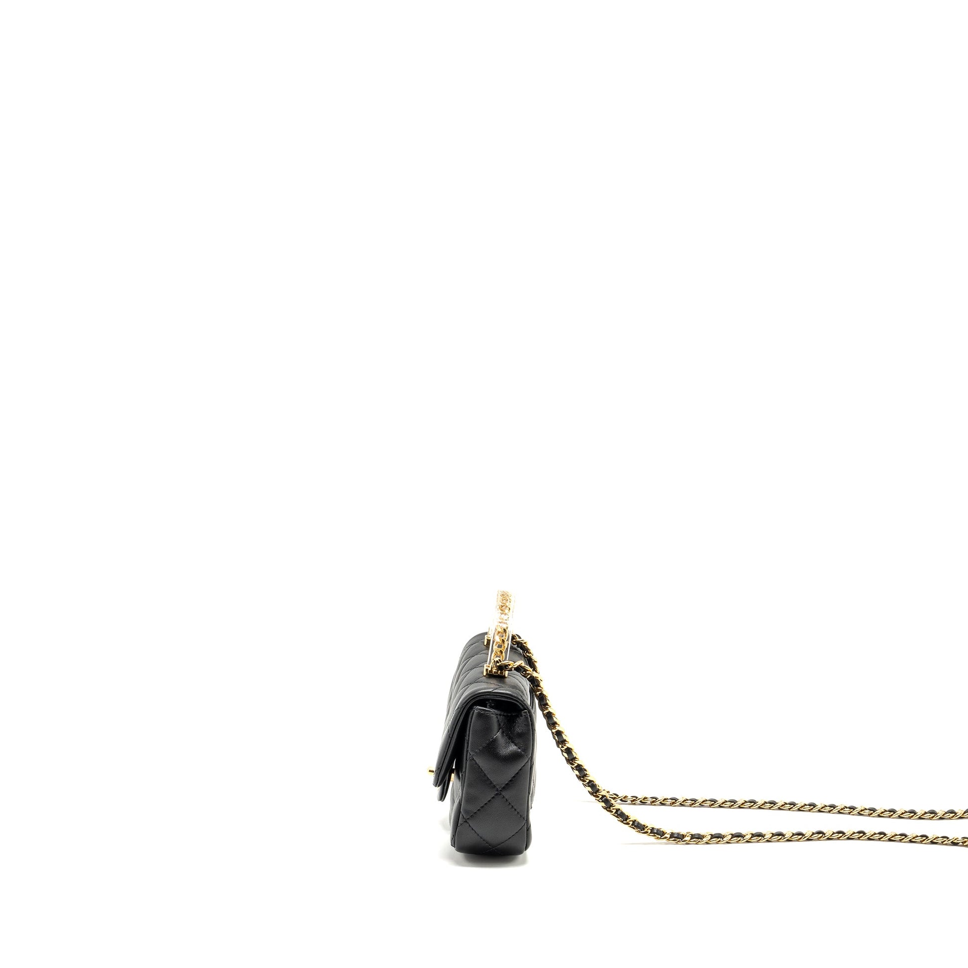 Chanel 24s Top Handle Mini Flap Bag Lambskin Black GHW (microchip)