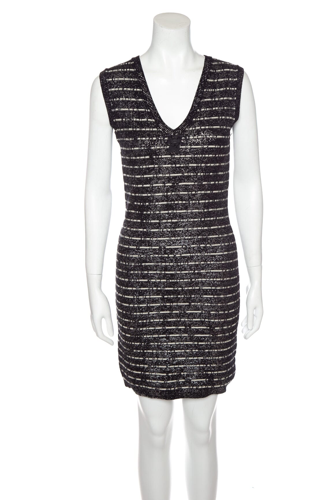Chanel Black and White Knit V-Neck Sleeveless Mini Dress SZ 36