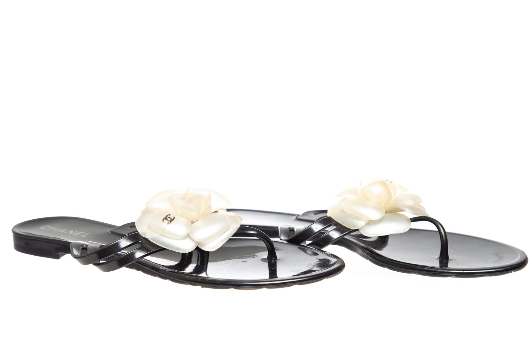 Chanel Black Jelly Camellia Thong Sandals. This item is in good condition.
