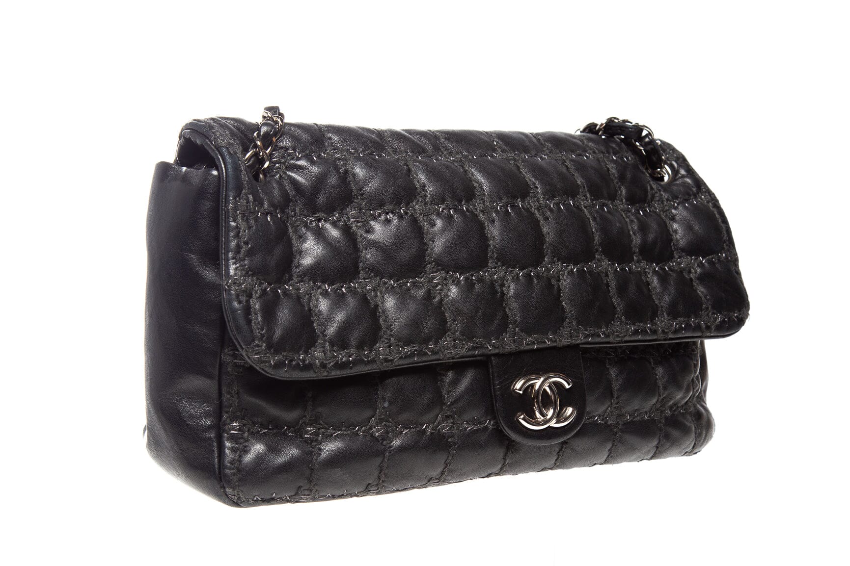 Chanel Black Leather and Tweed Flap Handbag. This item is in good condition.