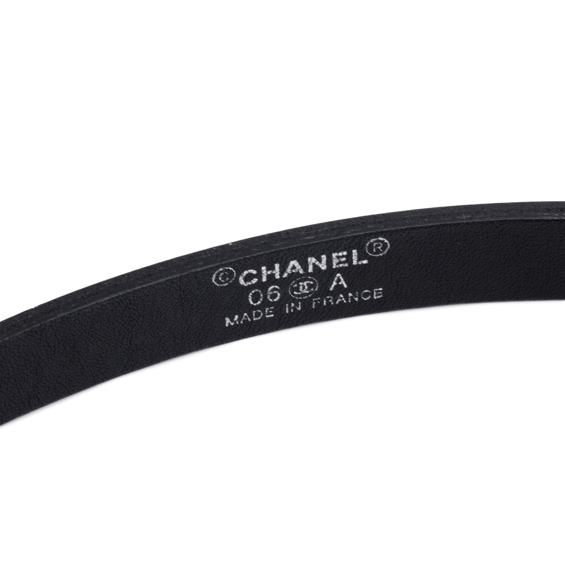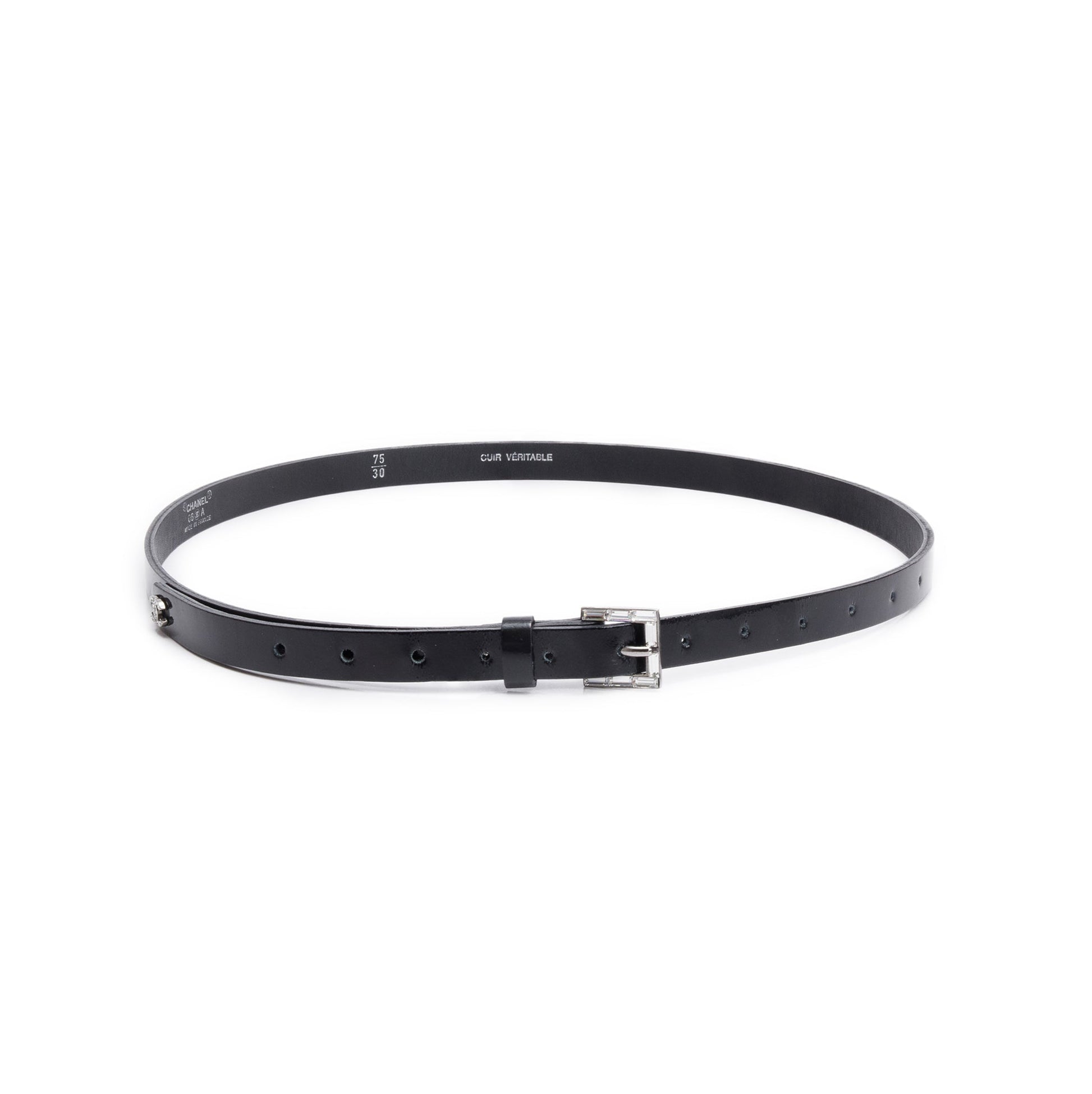 Chanel Black Patent Leather Strass Buckle Skinny Belt 75 30 w/ Box