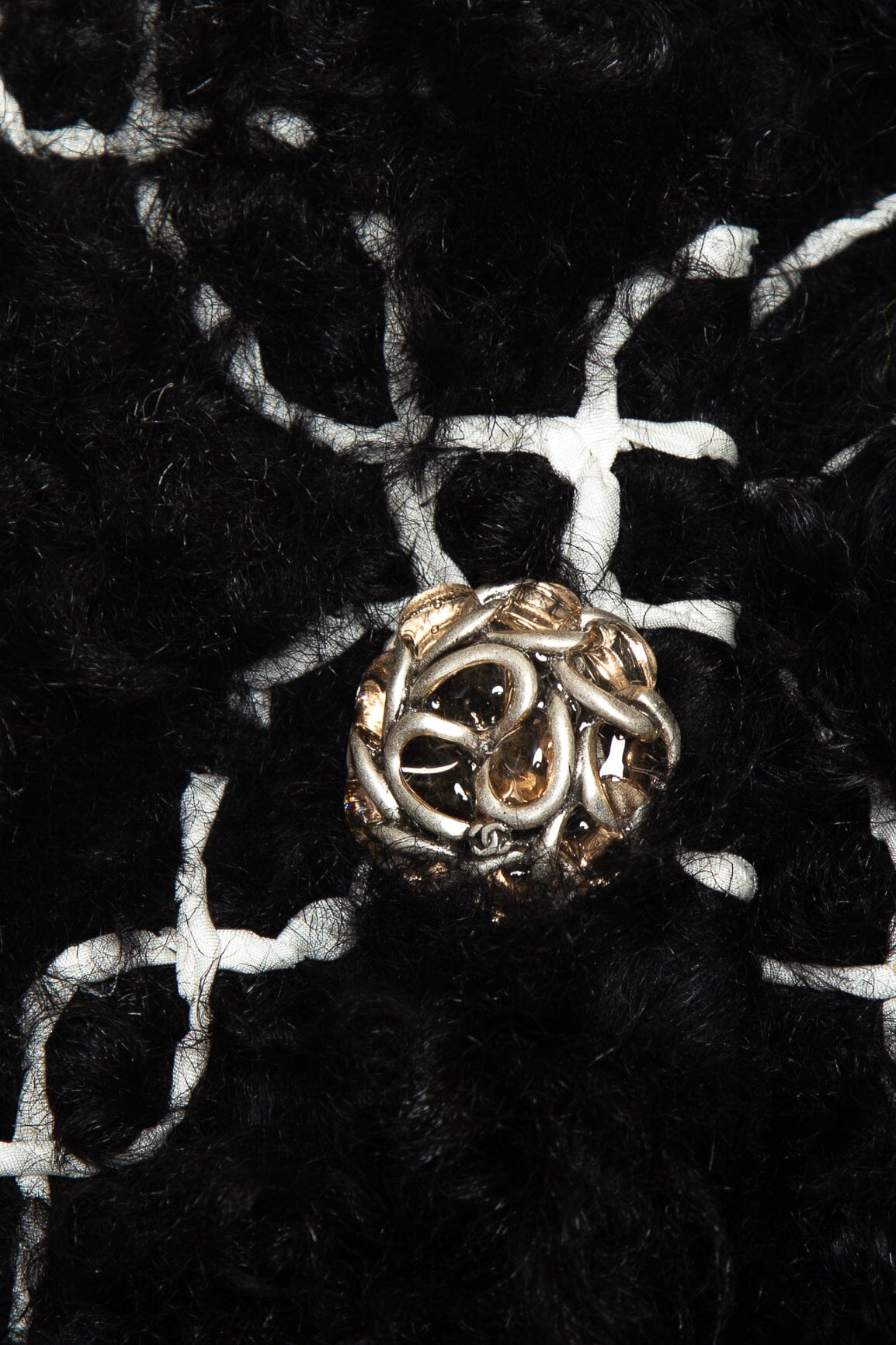 Chanel Black Lamb Shearling Fur Jacket w/White Ribbon Quilted Pattern; Lined in Silk. This item is in very good condition.