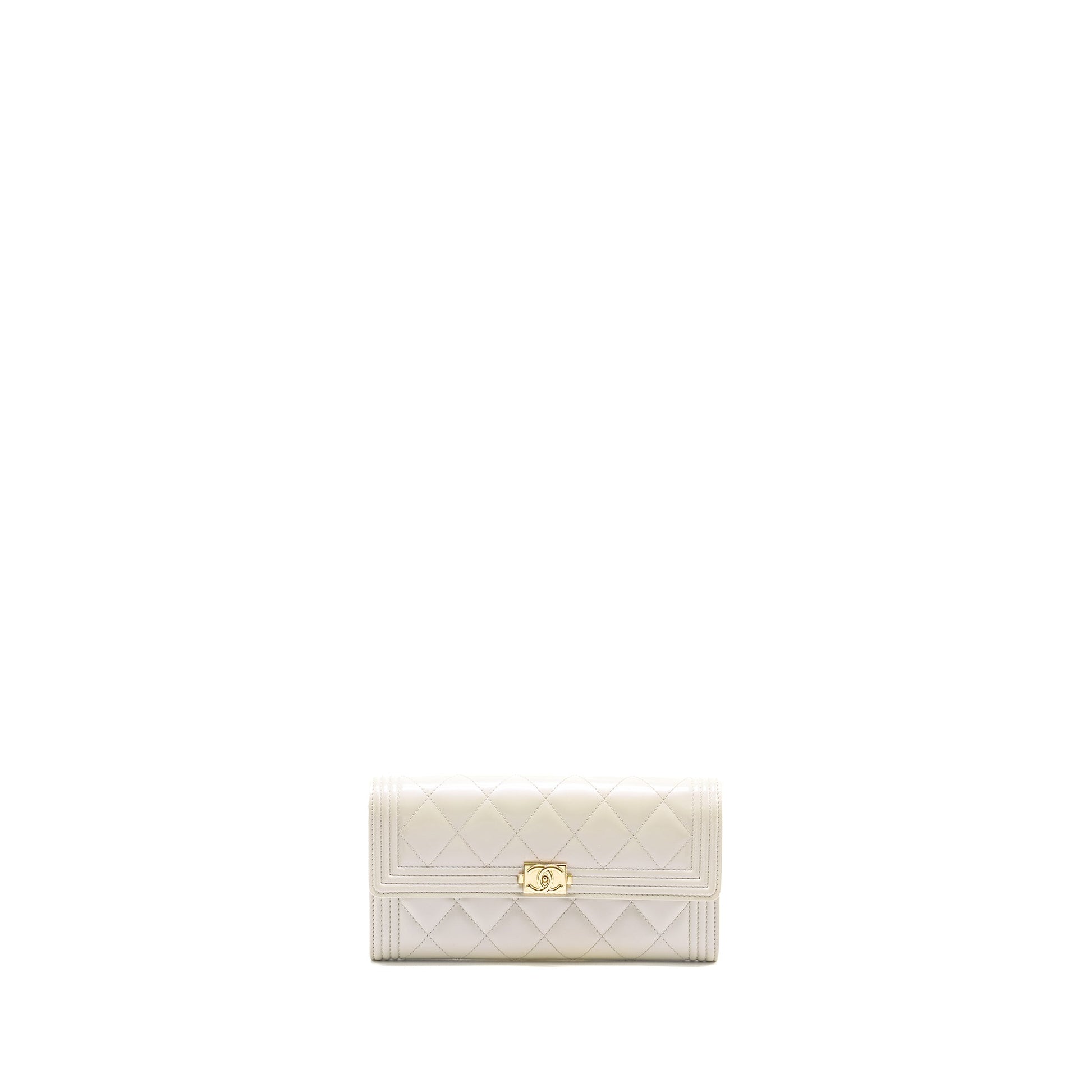Chanel Boy Long Wallet Patent Iridescent Light Grey LGHW