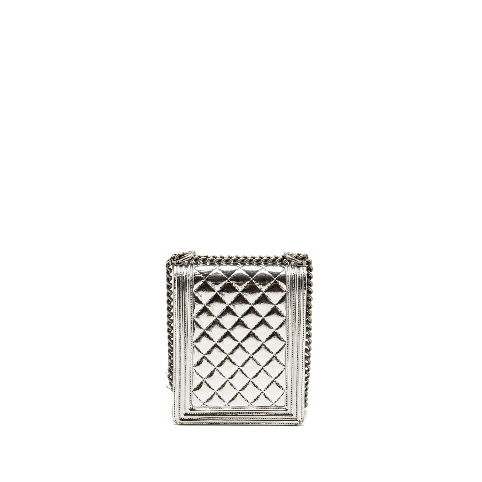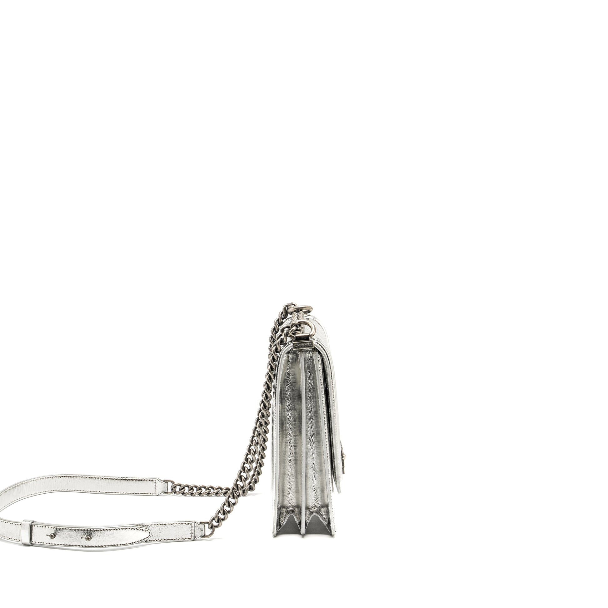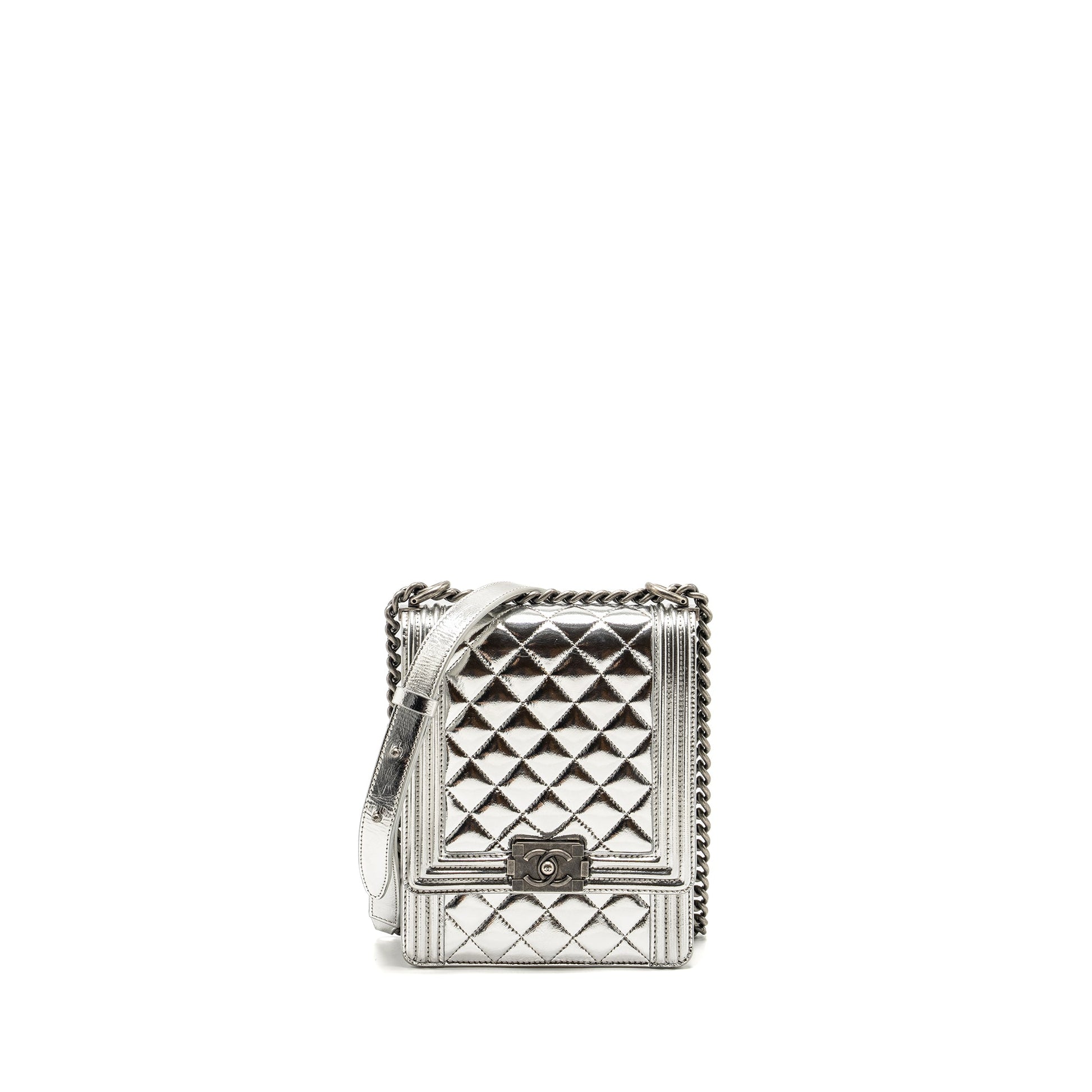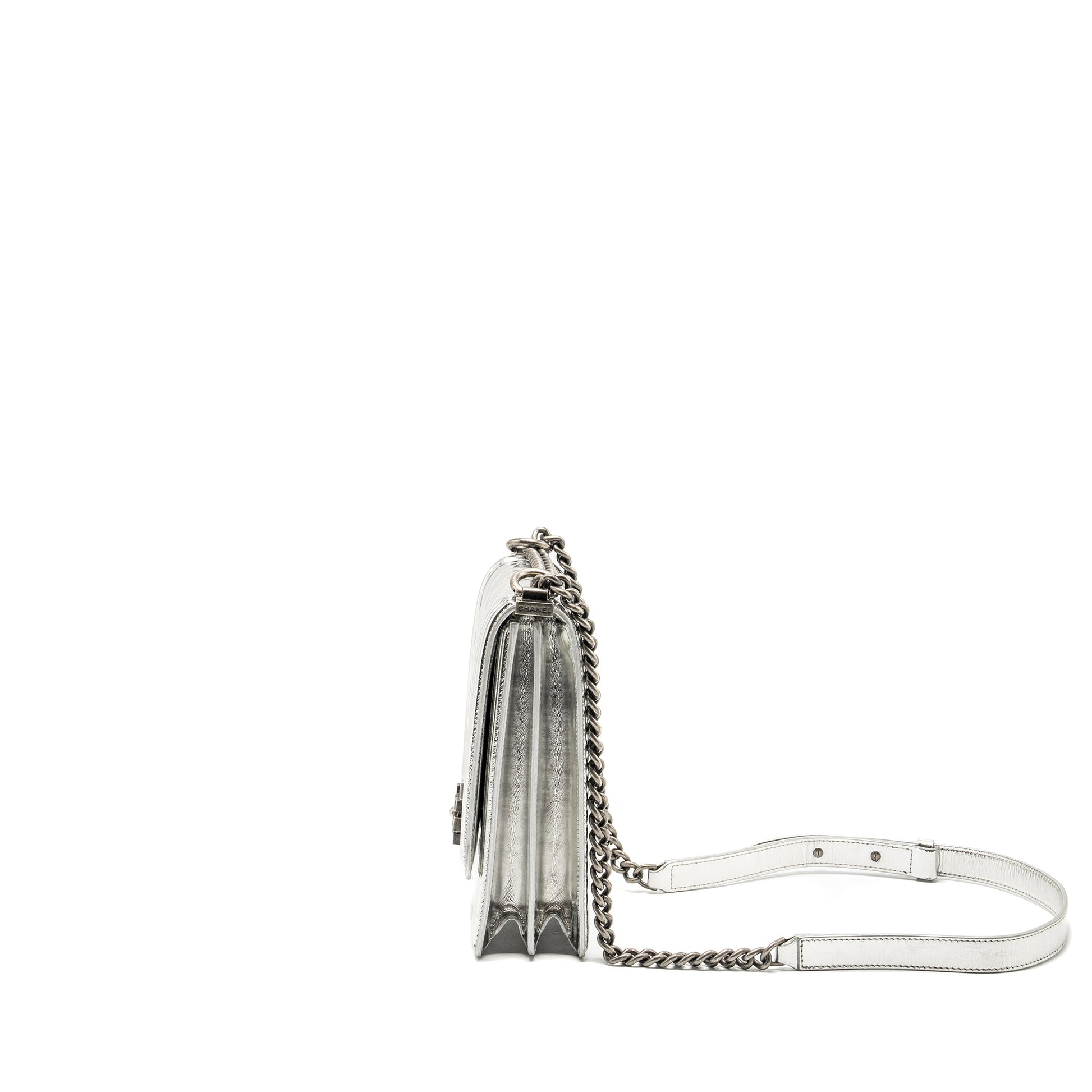 Chanel Boy North South Flap Bag Patent /goatskin Silver Ruthenium Hardware