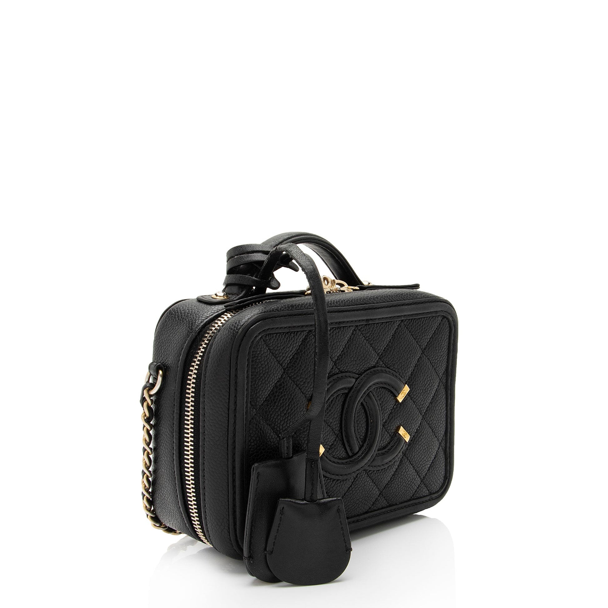 Chanel Caviar Leather CC Filigree Small Vanity Case (SHF-cBEpCt)