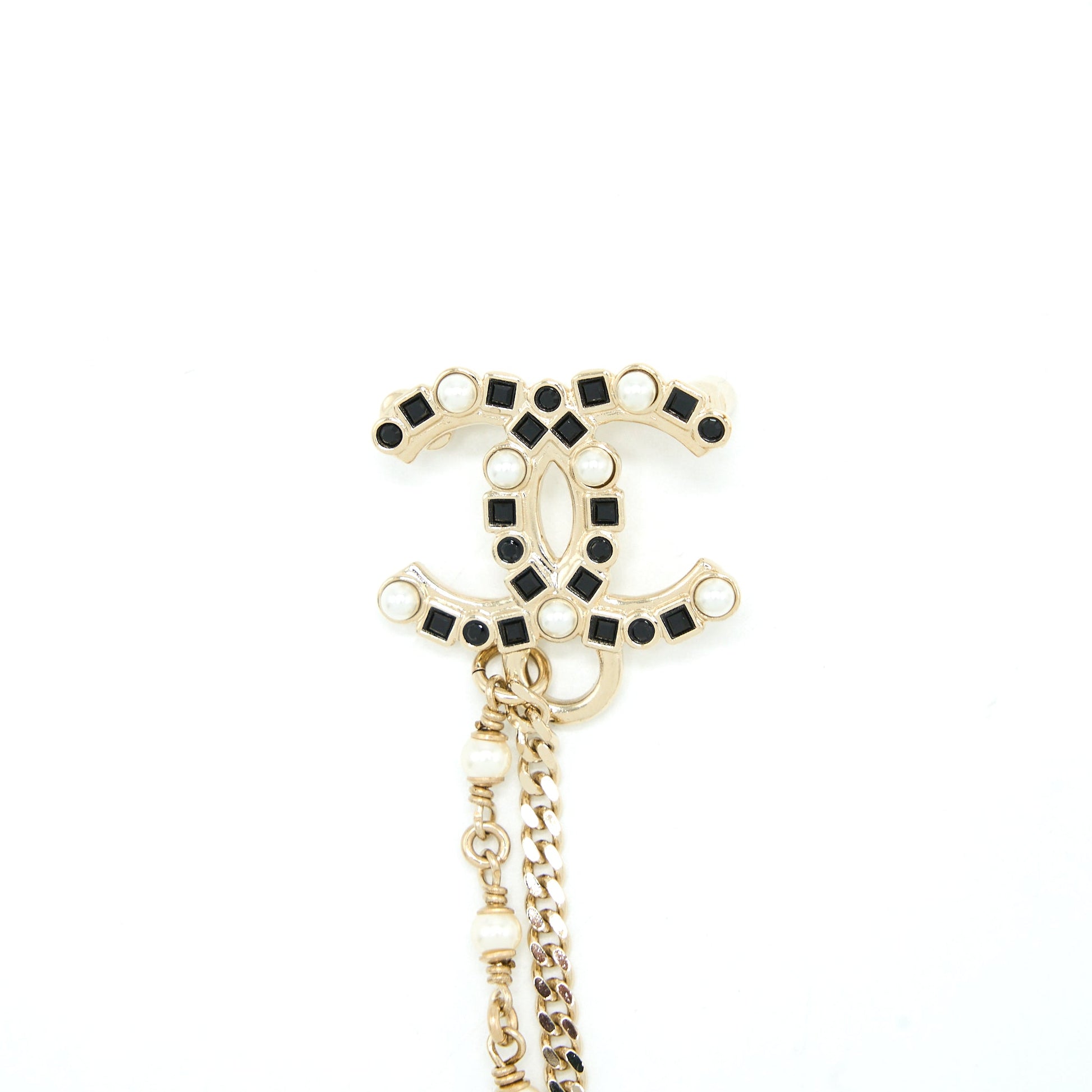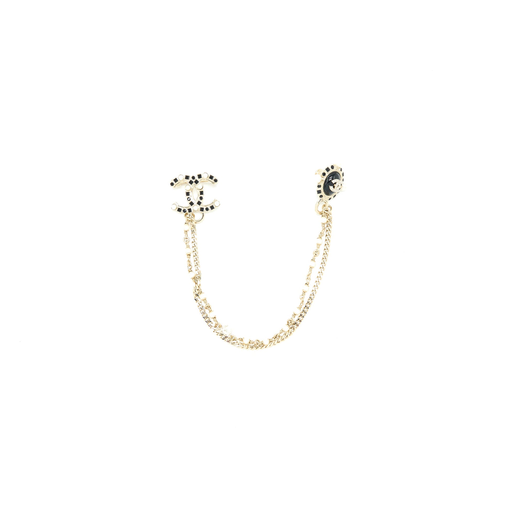 Chanel CC Logo Chain Brooch Crystal Light Gold Tone