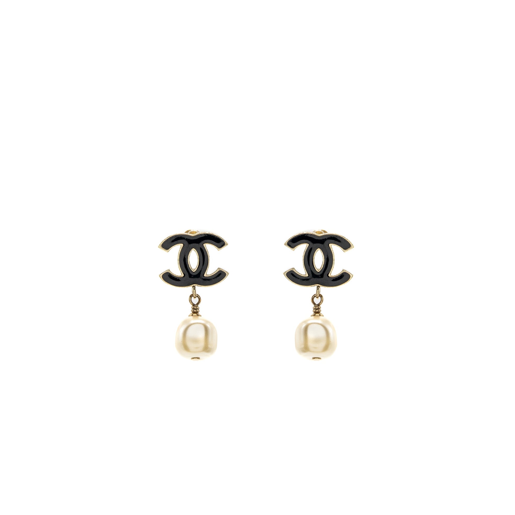 Chanel CC Logo Earring Pearl Drop Black/Light Gold Tone