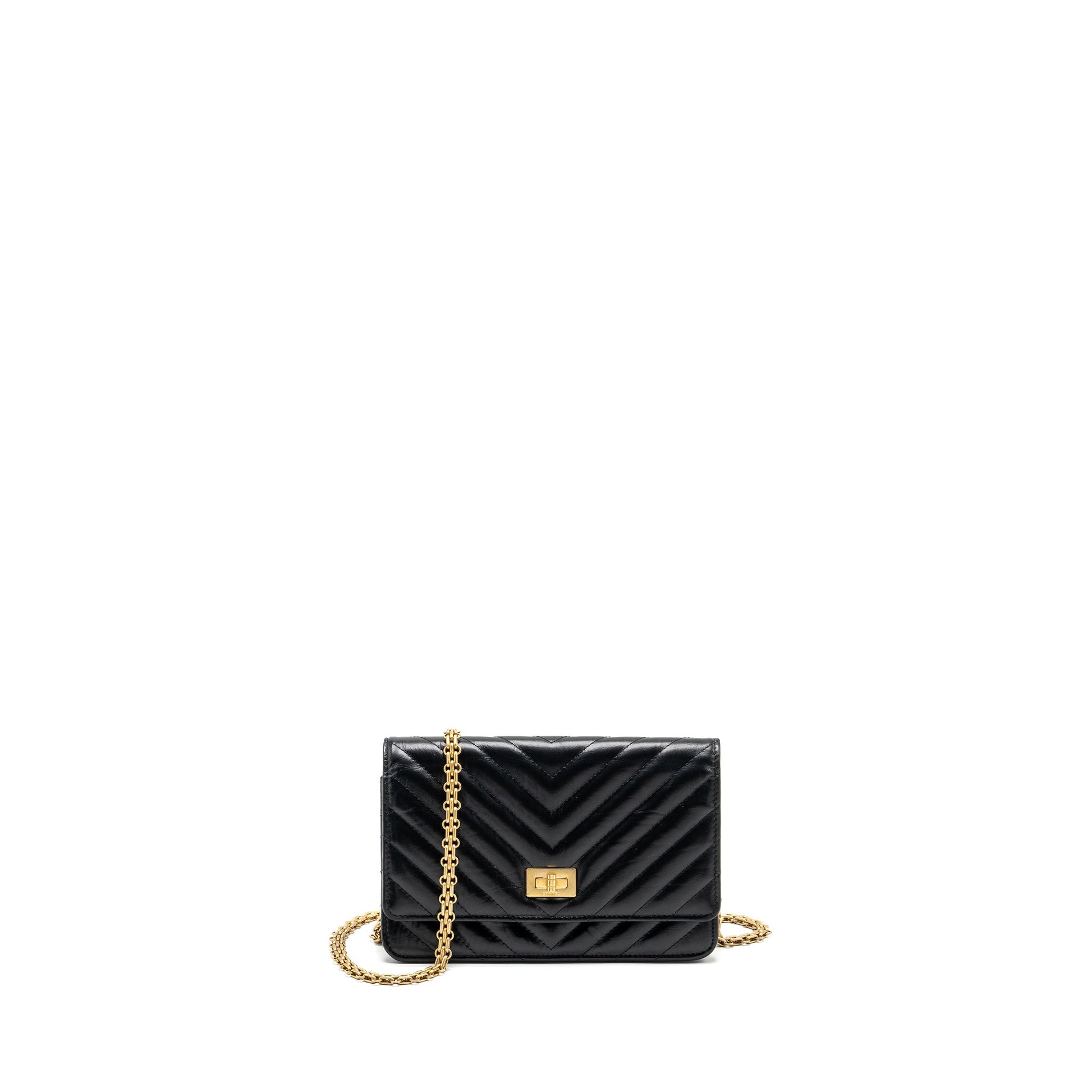 Chanel Chevron 2.55 reissue wallet on Chain aged calfskin black GHW (microchip)