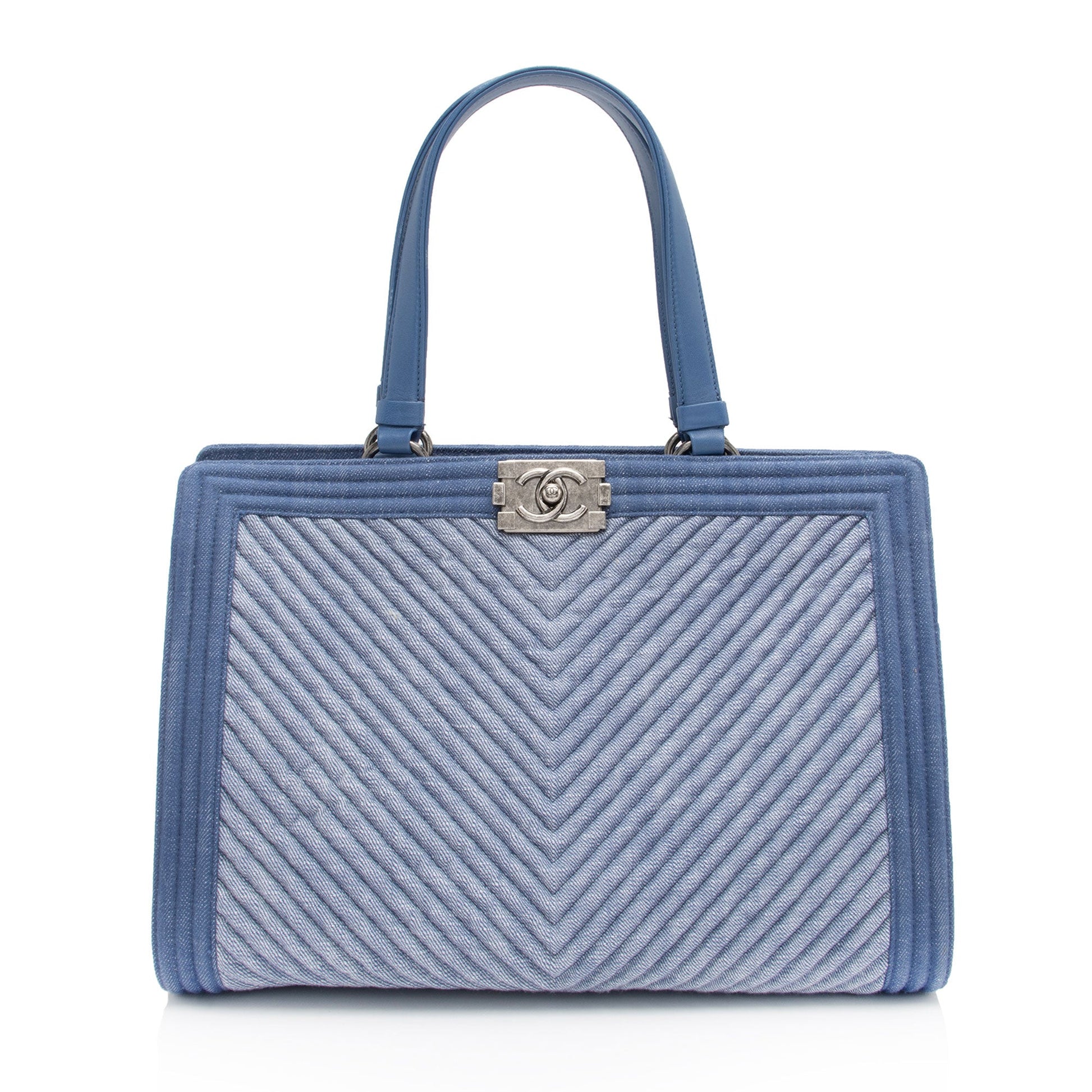 Chanel Chevron Denim Boy Tote (SHF-z2AHH6)