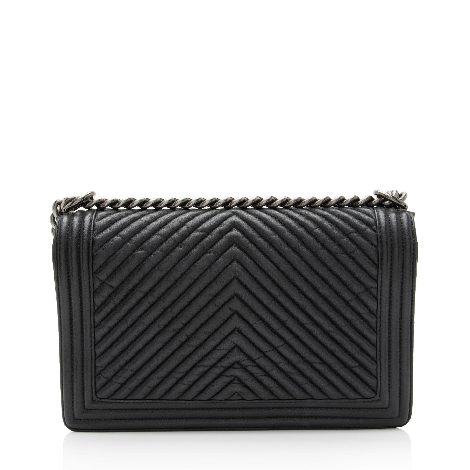 Chanel Chevron Wrinkled Lambskin New Medium Boy Bag (SHF-rjzaUj)